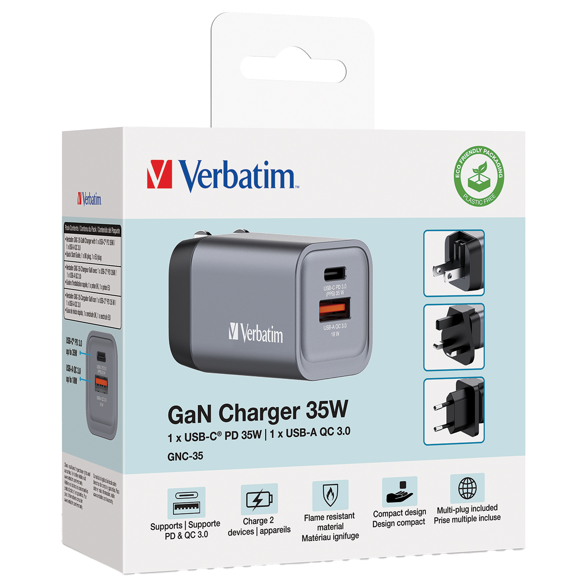 Info sui prodotti "Adattatore da viaggio GNC-35 - 1x USB-C PD 35W, 1x USB-A QC 3.0 35W - Verbatim - 32200"