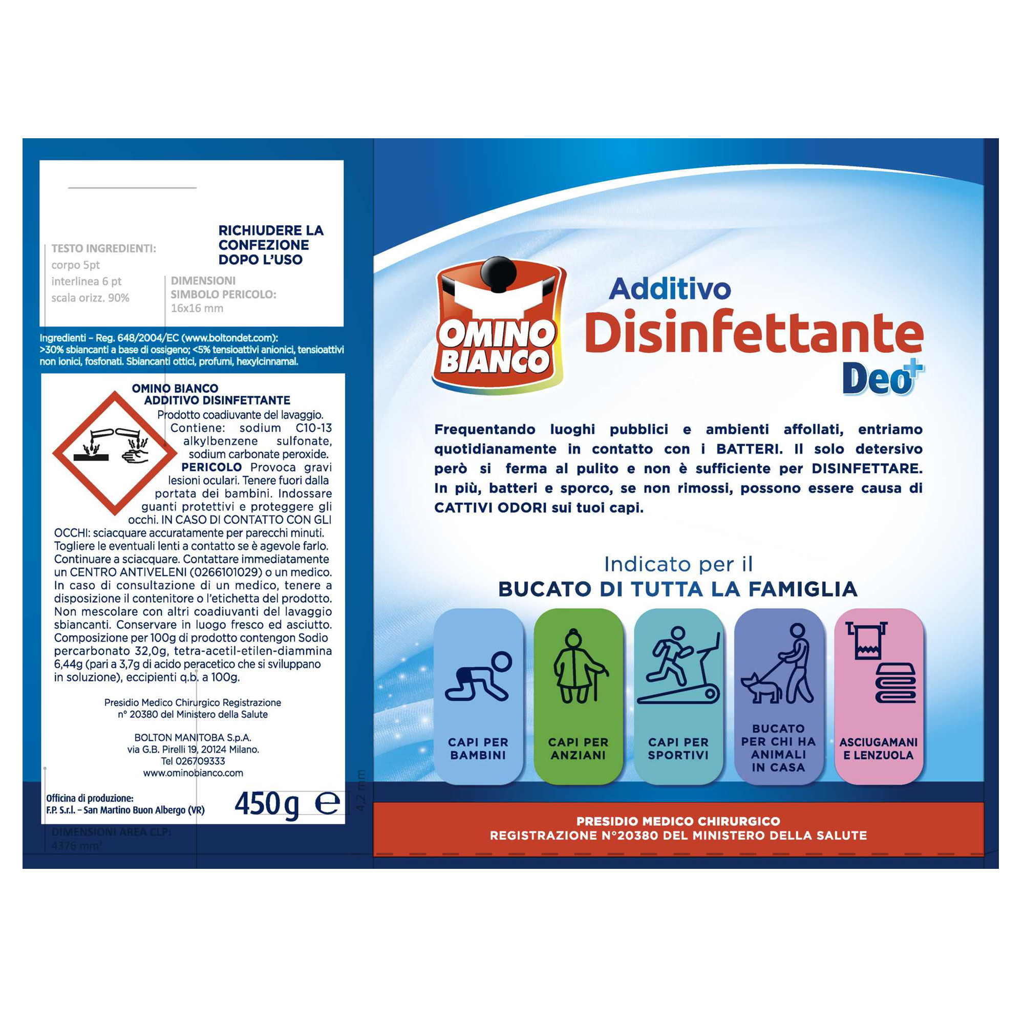 Info sui prodotti "Additivo Omino Bianco disinfettante per tessuti - 450 gr - Omino Bianco"