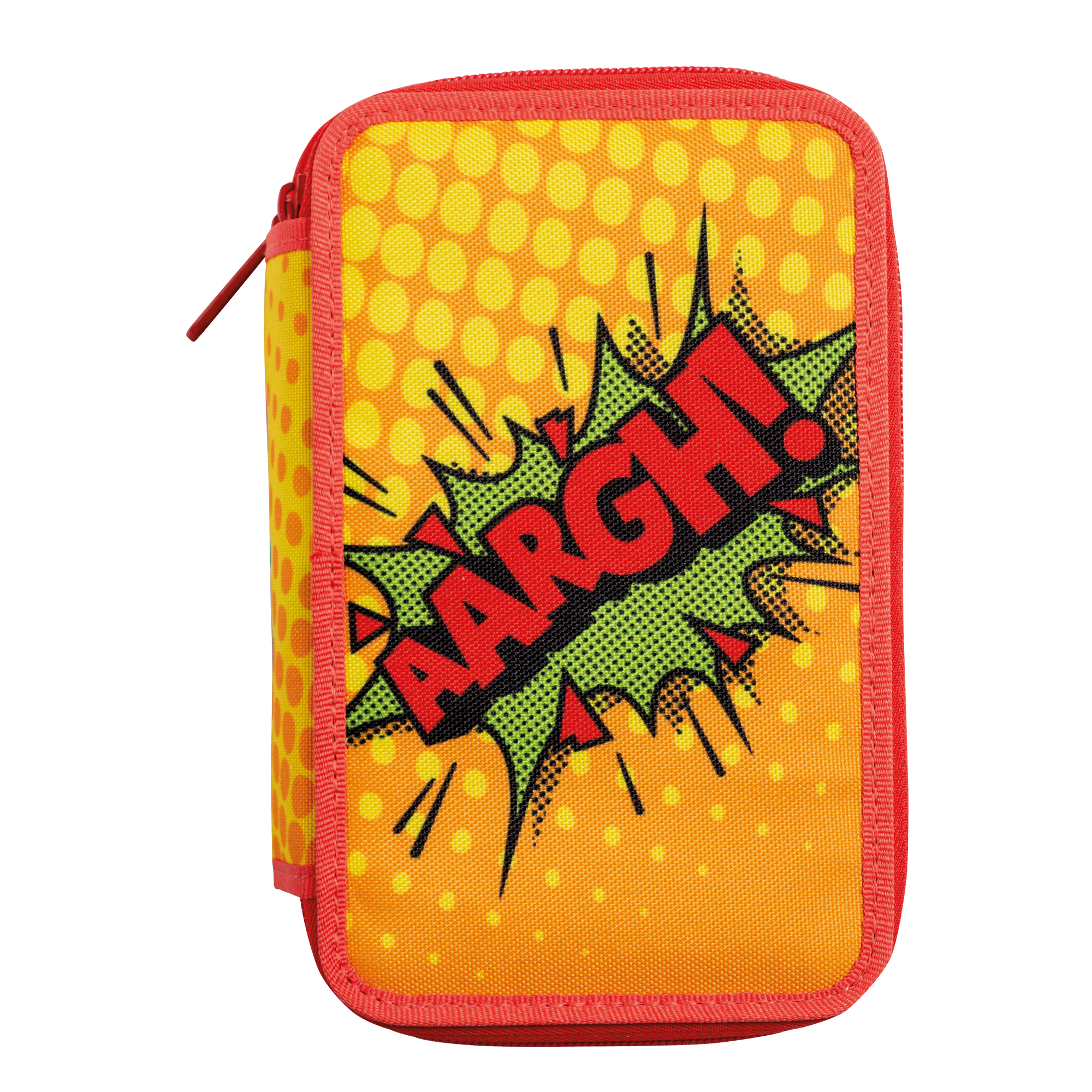 Astuccio 3 zip in vivaci colori e fantasie. Realizzato in tessuto resistente con bordi rinforzati. Contiene: 18 pennarelli punta fine Joy, 18 matite colorate Tita, 1 sfera cancellabile OOPS Pop, 1 sfera colore blu ,1 matita grafite HB, 1 temperino a 1 foto plastica, 1 gomma, 1 righello cm. 20
