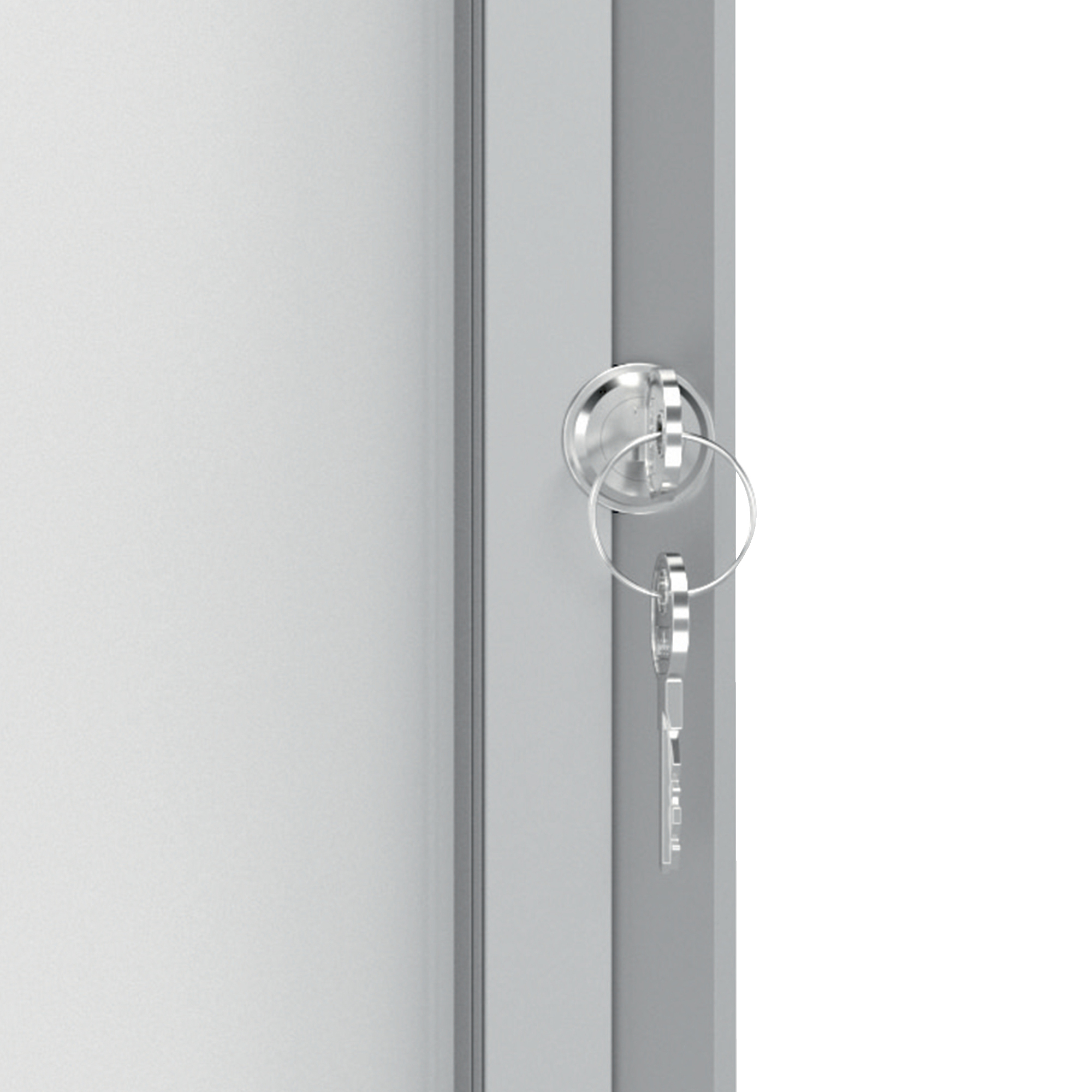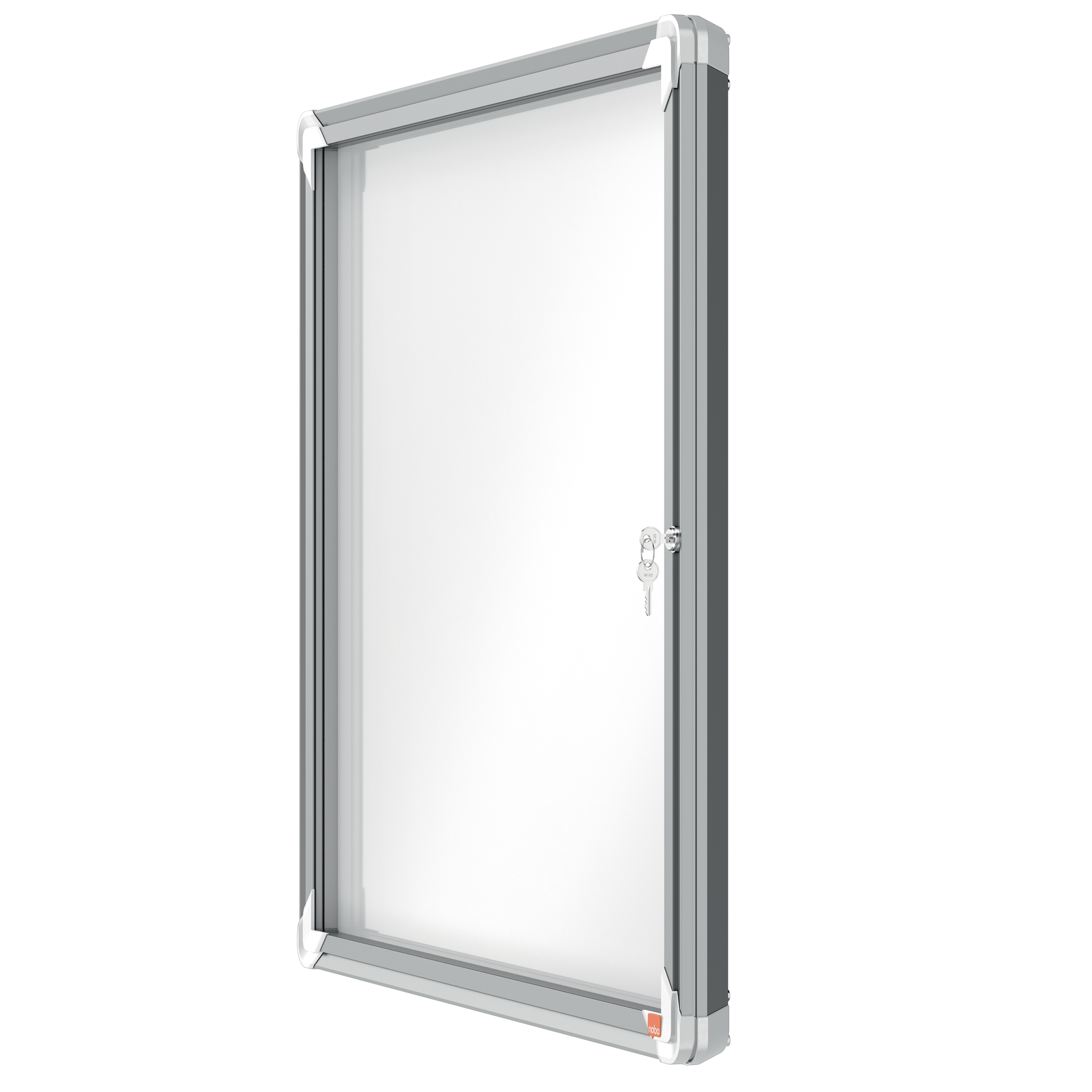 Ad anta battente. Moderna, sicura e resistente all'umidità. Robusta cornice in alluminio e vetro di sicurezza da 4mm. Fondo in acciaio bianco magnetico e scrivibile con pennarelli a secco. Fissaggio semplice effettuabile da una sola persona. Serratura con 2 chiavi. Dimensioni esterne: 70,9 x 66,8cm Dimensioni interne: 65 x 70,9cm