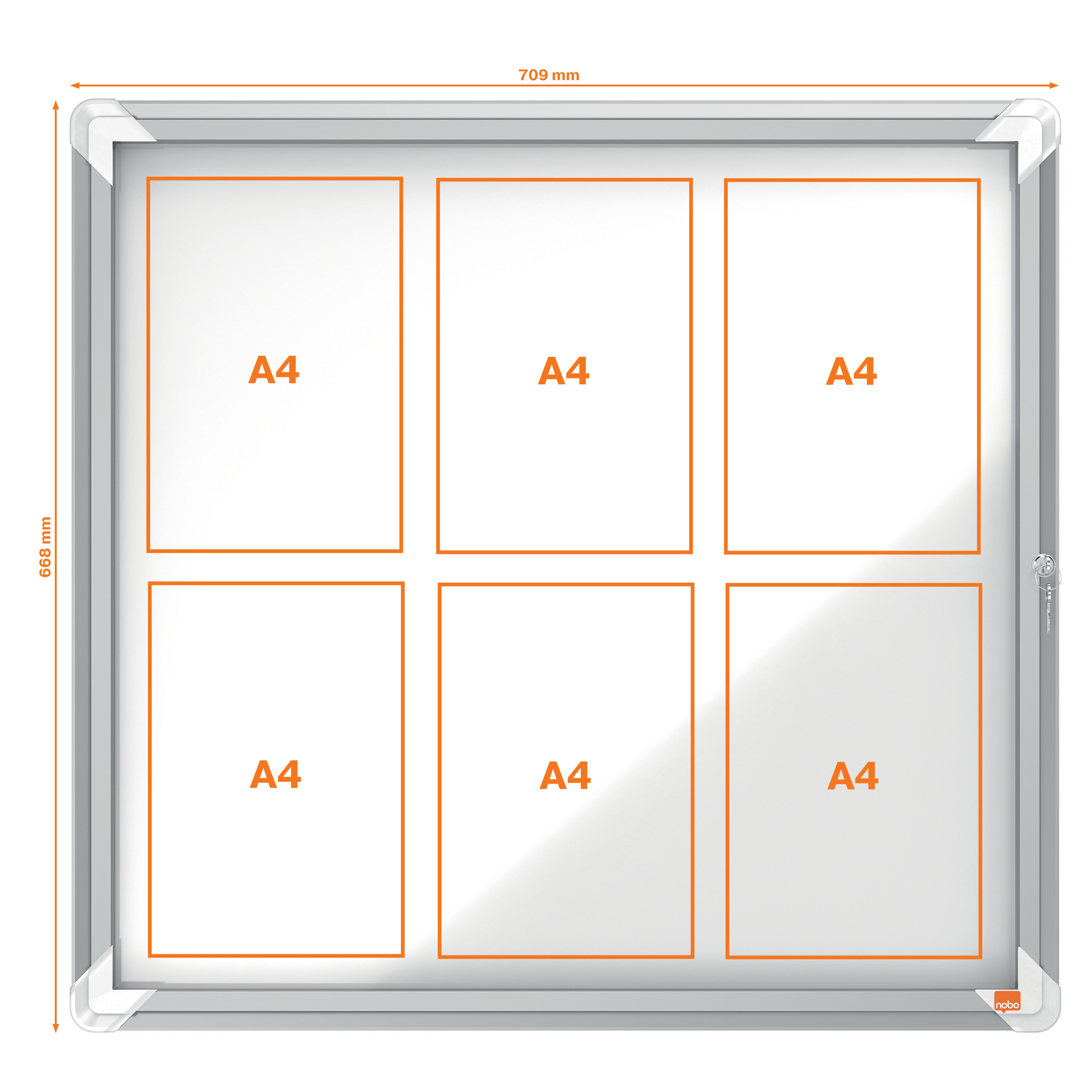 Info sui prodotti "Bacheca per esterni - fondo magnetico bianco - 6 fogli A4 - orizzontale - Nobo"