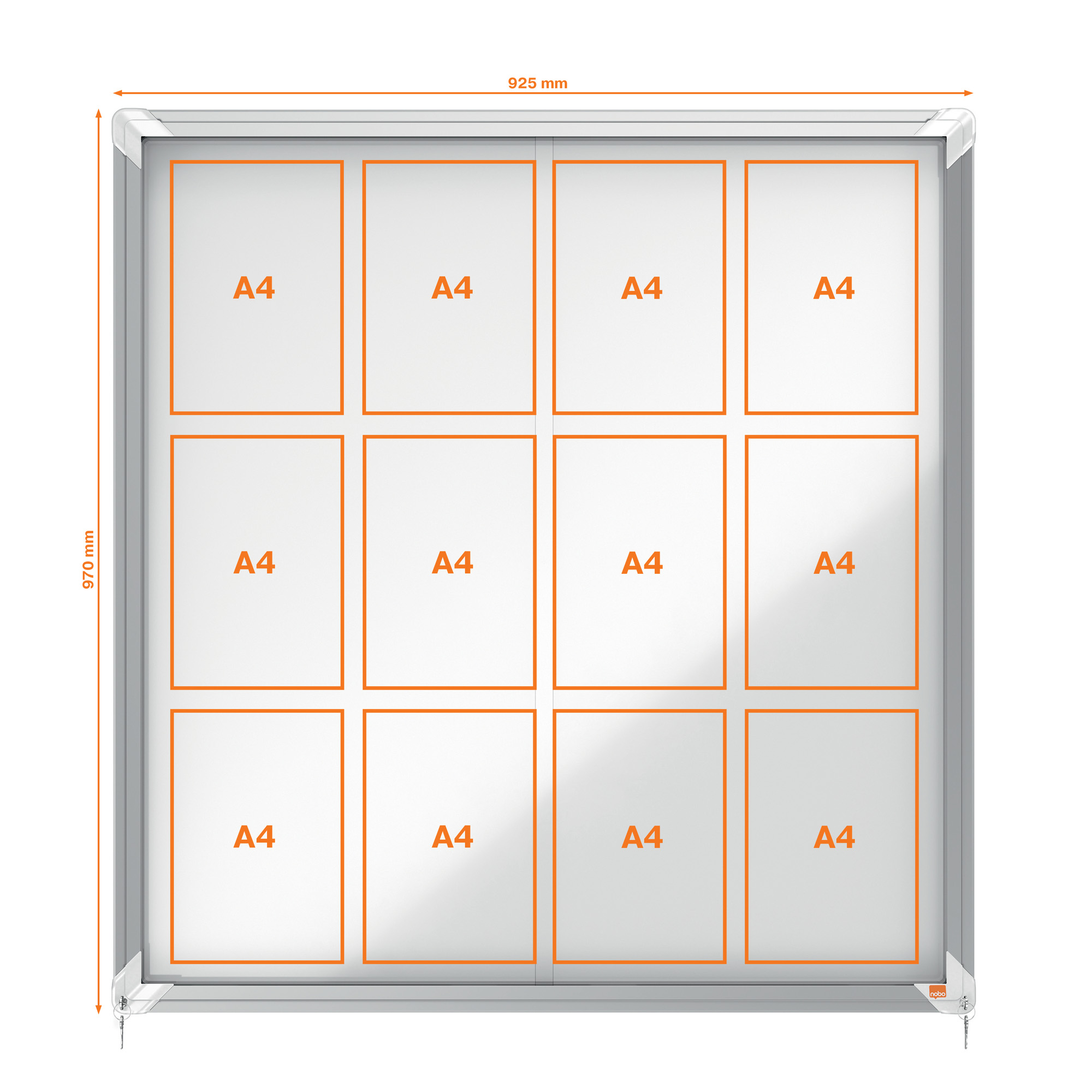 Info sui prodotti "Bacheca per interni - fondo in metallo - 12 fogli A4 - ante scorrevoli - Nobo"