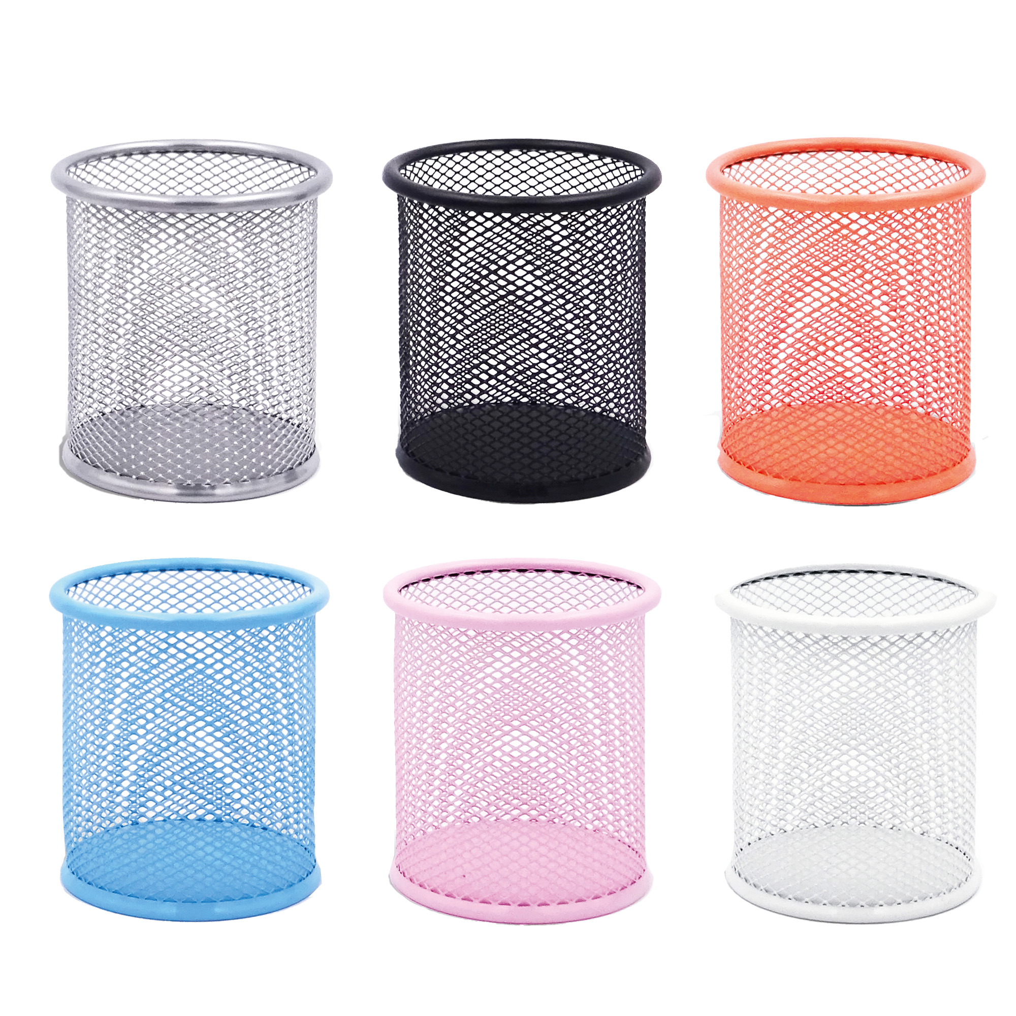 Bicchieri portapenne - rete metallica colorata - 8,5 x 10 cm - Lebez - conf. 6 pezzi