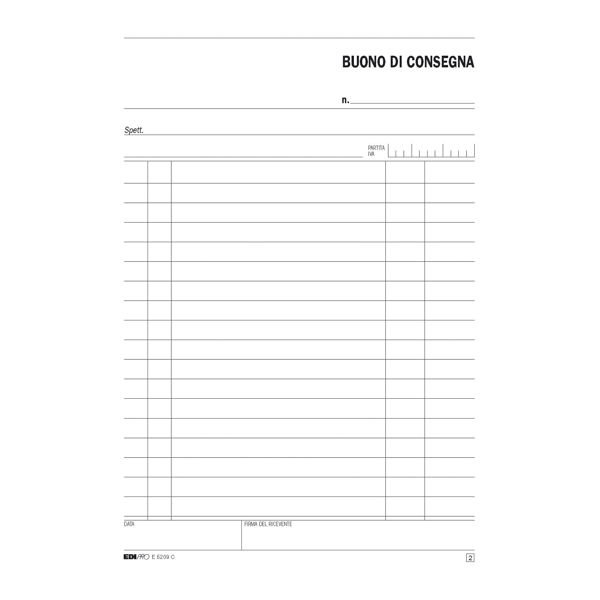 BLOCCO BUONI DI CONSEGNA. Formato 23 x 15cm. 50 fogli. 2 copie ric.