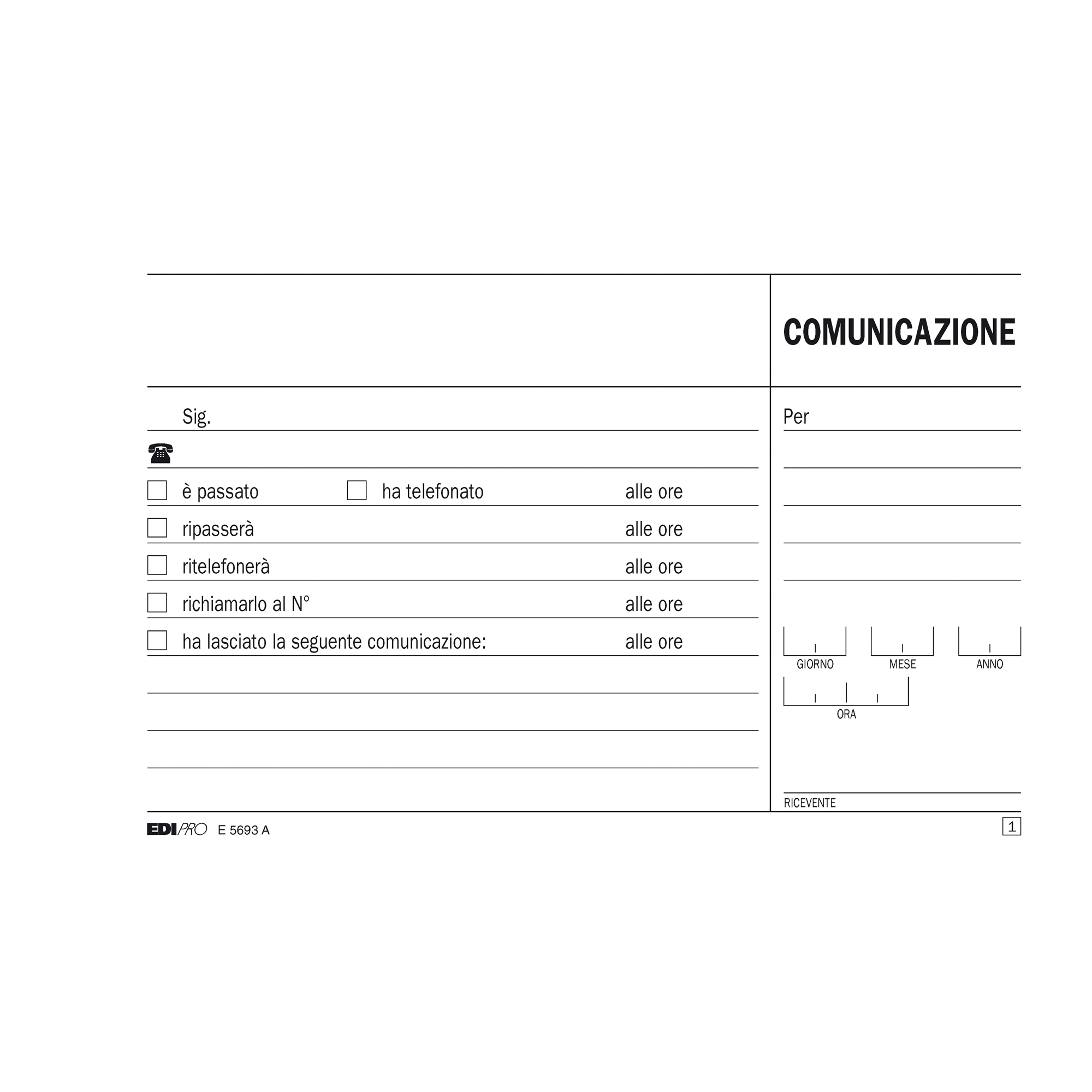 Blocco comunicazioni telefoniche - 50/50 fogli autoricalcanti - 9,9 x 17cm - Edipro