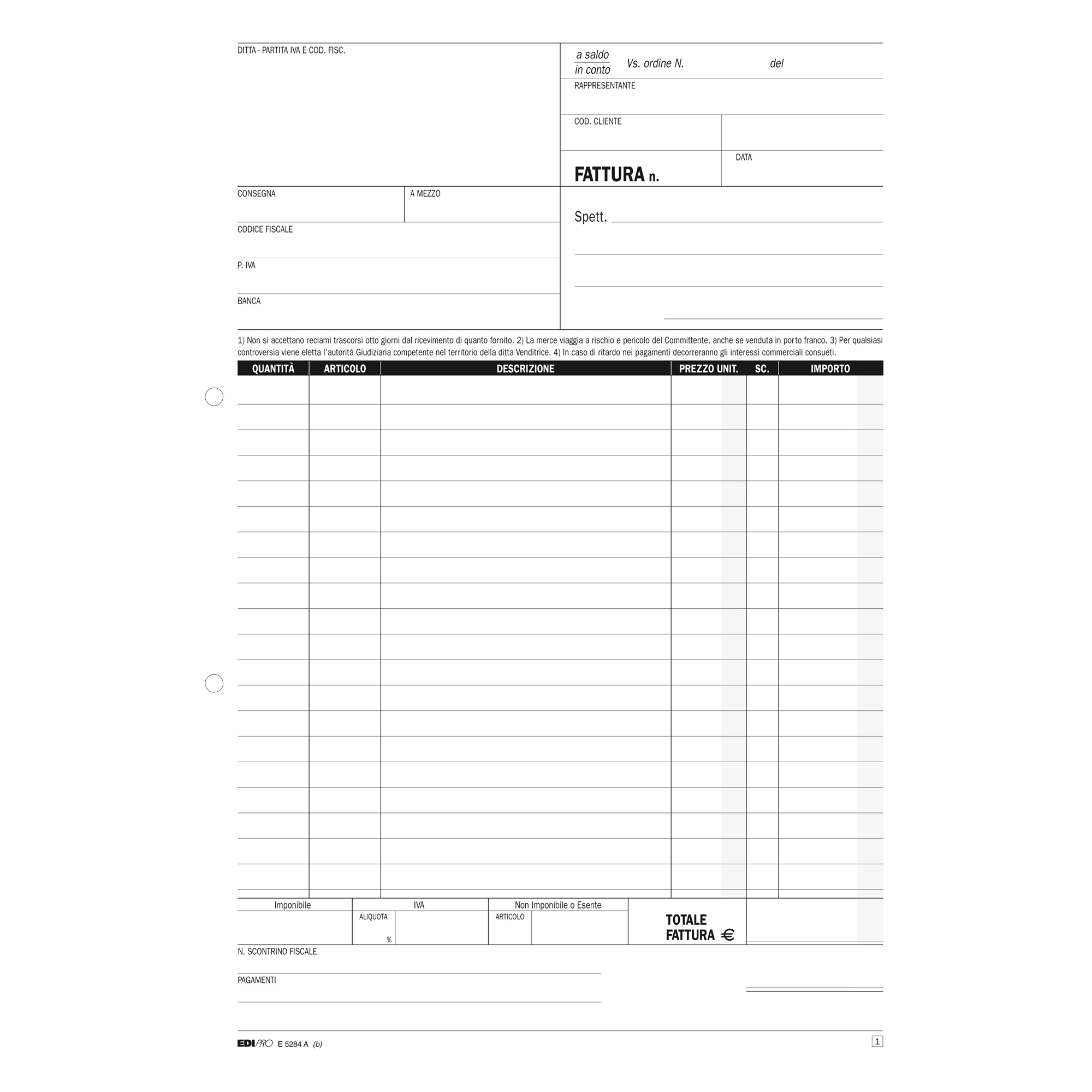 Blocco fatture 1 aliquota Iva - 33/33/33 fogli autoricalcanti - 29,7 x 21cm - Edipro
