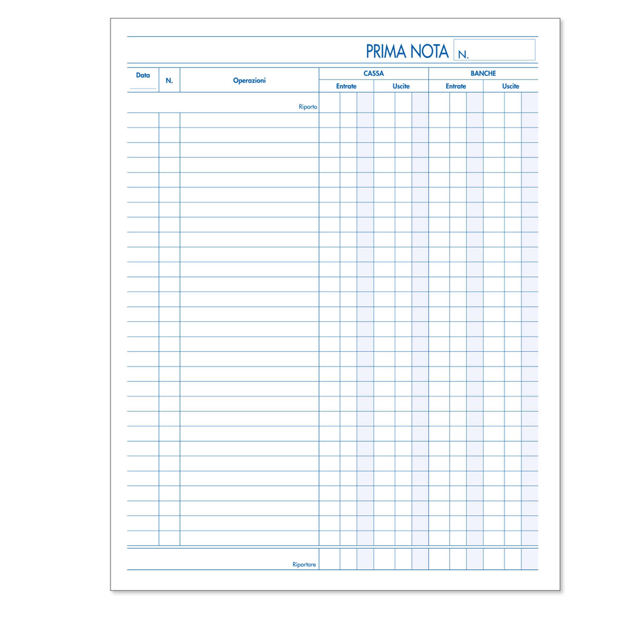 BLOCCO PRIMA NOTA CASSA. Formato 220x280mm. Fogli 50x2. Ric.