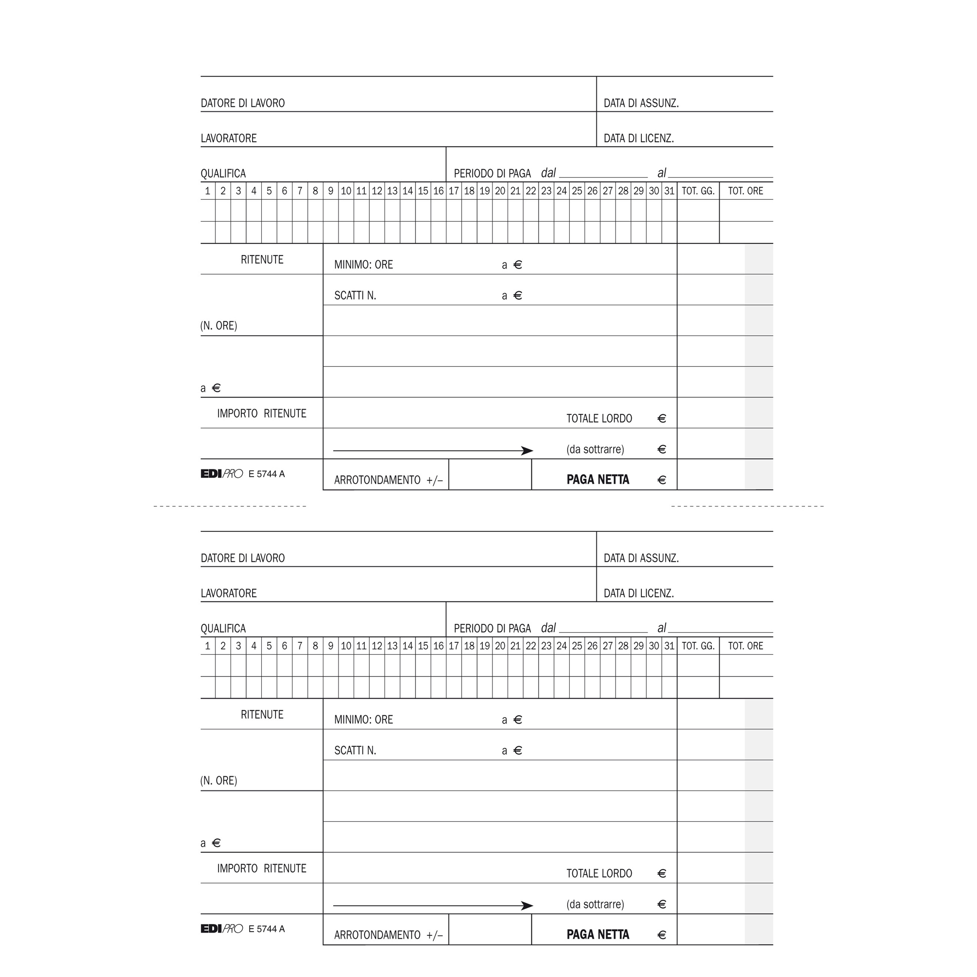 Blocco retribuzioni domestici - 24 x 15cm - 25 fogli 3 copie ricalcanti - Edipro
