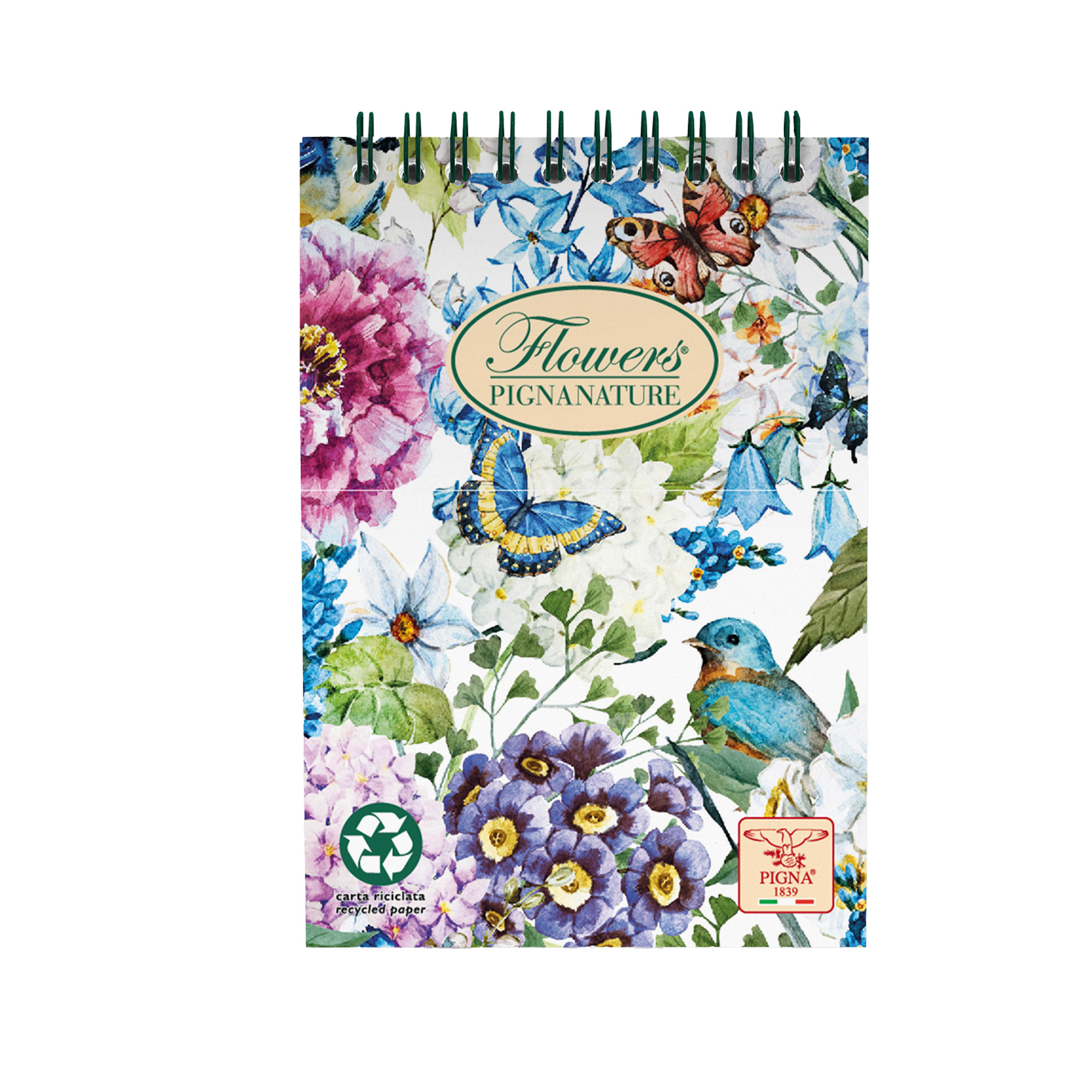 Blocco spirale Nature Flowers - A5 - 5mm - 50 fogli - 80 gr - spiralato sul lato corto - Pigna
