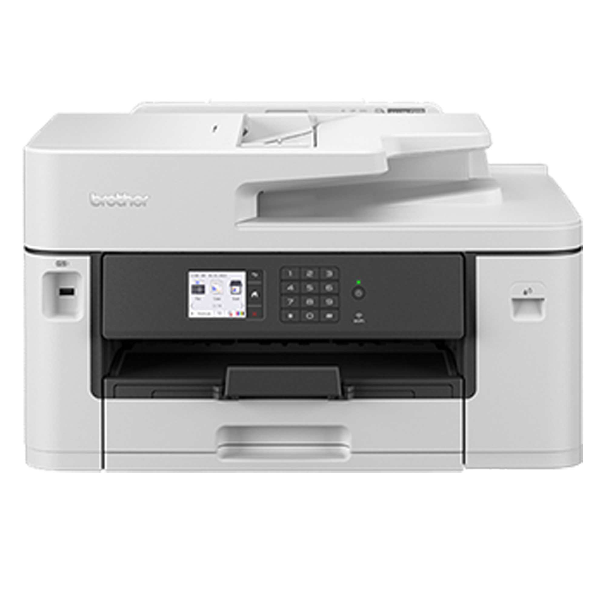 Stampante multifunzione inkjet A3 wireless. Può stampare fino al formato A3 mentre può copiare e scansionare fino al formato A4. Multifunzione professionale con elevate velocità di stampa per piccoli uffici. • Funzionalità di stampa (fino al formato A3), copia, scansione e fax • Velocità di stampa fino a 28 ipm in bianco e nero e a colori • Stampa fronte/retro A4 automatica • Connettività cablata e wireless | Compatibile con dispositivi mobili: scarica l'app: Brother Mobile Connect • Touchscreen LCD a colori da 6,8 cm • Capacità carta 250 fogli | ADF da 50 fogli | slot di alimentazione manuale