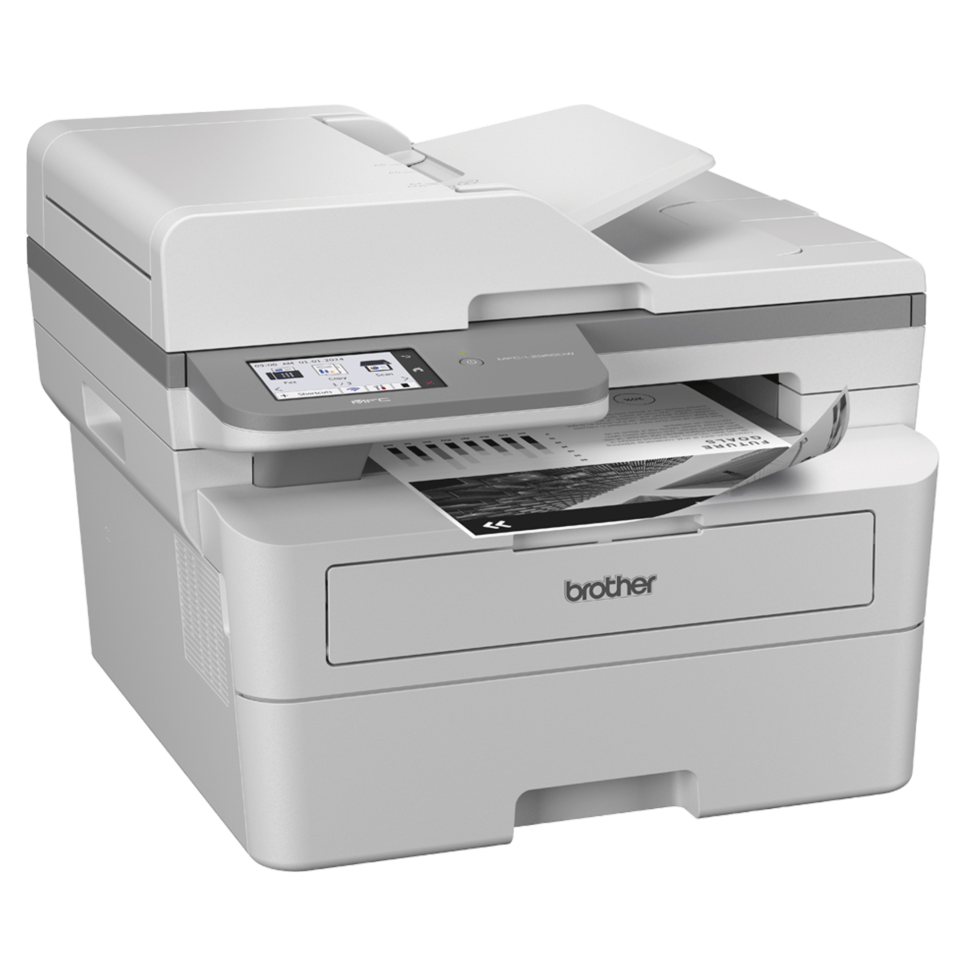 Un'ottima scelta quando lo spazio è limitato. Stampante multifunzione adatta per le piccole imprese, produce stampe di qualità silen ziosamente. Stampa, copia, scansione e fax in un unico dispositivo professionale compatto, efficiente e wireless. • Stampa da PC o app mobile • Memoria interna da 256MB • Alimentatore automatico di documenti (ADF) su 2 lati da 50 fogli • Vassoio di alimentazione carta da 250 fogli • Compatibile con soluzioni Brother e di terze parti • Stampa fino a 34 pagine al minuto • Stampa fronte retro automatica, fino a 16 pagine al minuto • Scansione su 2 lati fino a 22,5 immagini al minuto • Touchscreen a colori da 8,8 cm • Fast ethernet e WiFi fino a 5GHz • Viene fornito con toner da 1.500 pagine