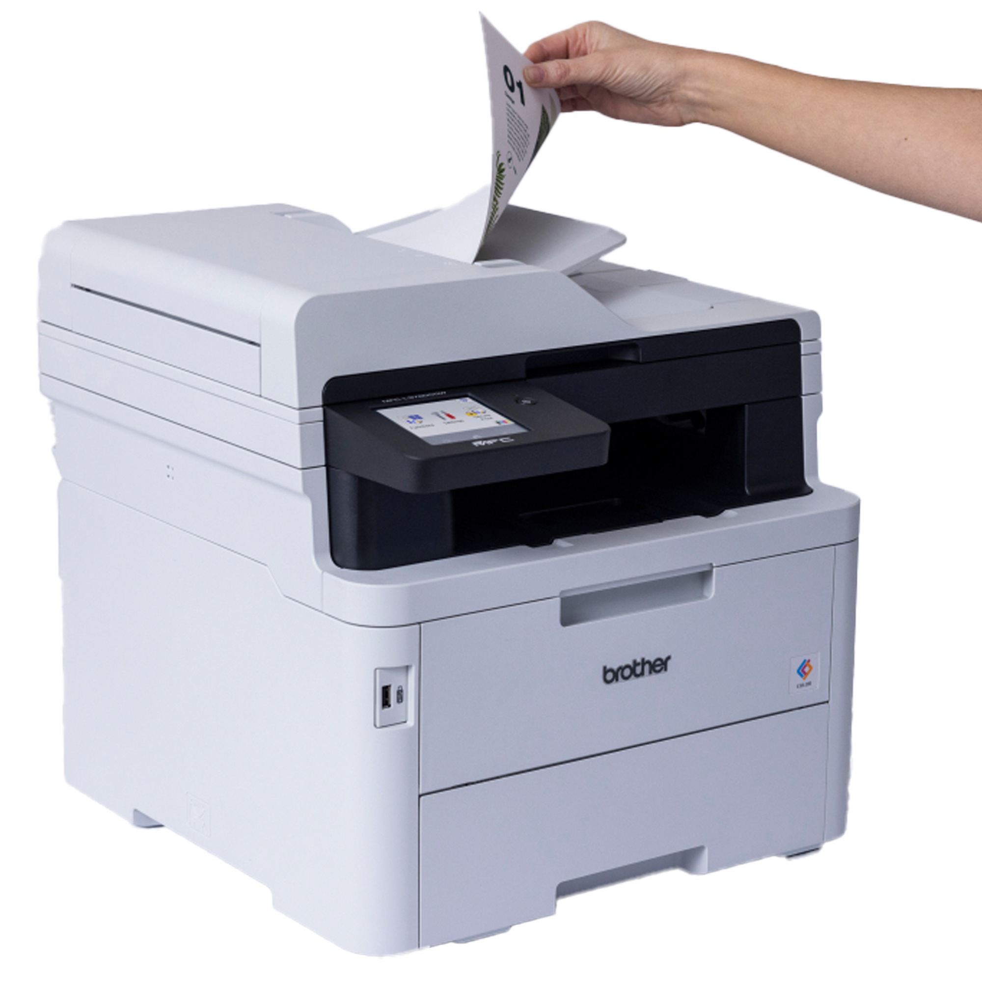 Stampante multifunzione LED a colori con WiFi, rete cablata, USB. Stampa veloce con connettività flessibile, a colori, per fornire documenti di alta qualità. • Stampa fino a 26 pagine al minuto • Gigabit ethernet, WiFi a 5 GHz e USB • Touchscreen a colori da 8,8cm • Vassoio carta da 250 fogli • Alimentatore automatico documenti (ADF) da 50 fogli • Inclusi toner inbox nero e a colori fino a 1.000 pagine. Disponibili separatamente toner ad alta a capacità fino a 3.000 pagine mo nocromatiche e fino a 2.300 pagine a colori.