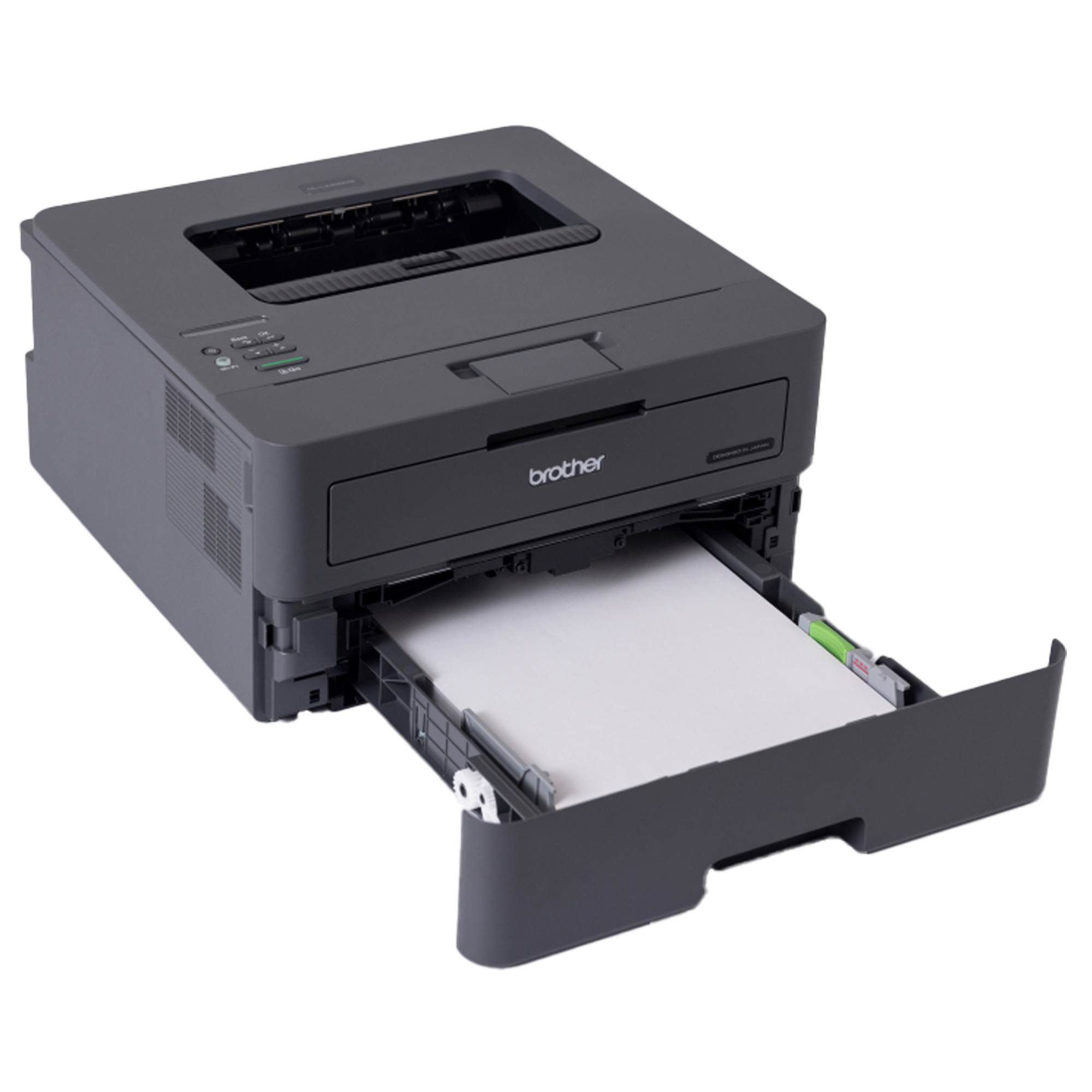 Stampante laser monocromatica A4. Stampa fino a 30 ppm, fronte-retro automatica, fino a 15 ppm, WiFi 5GHz e USB, memoria da 64MB, toner inbox 700 pagine. • Stampa fino 30 pagine al minuto • Stampa fronte-retro automatica, fino a 15 pagine al minuto • Pannello di controllo LCD a 1 riga • WiFi 5GHz e USB, app Brother Mobile Connect • Memoria interna 64MB • Vassoio carta da 250 fogli