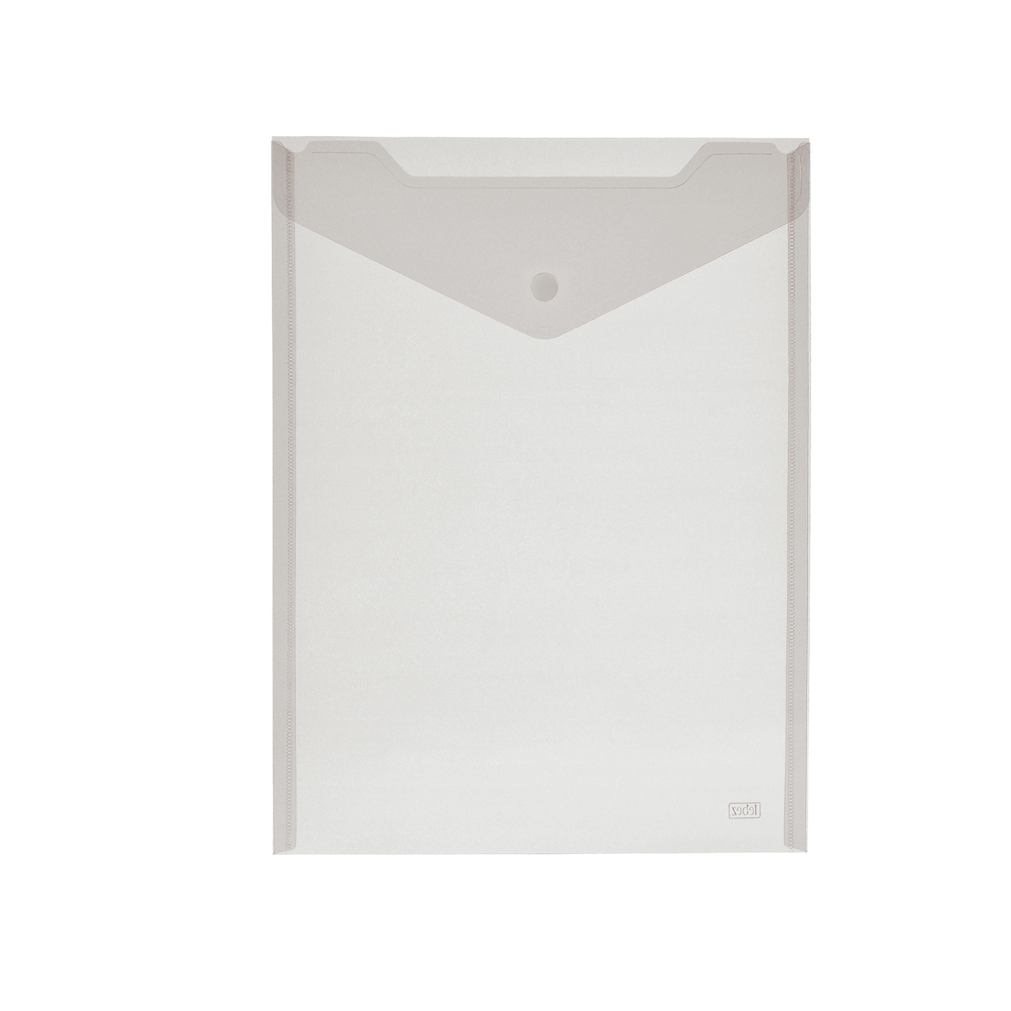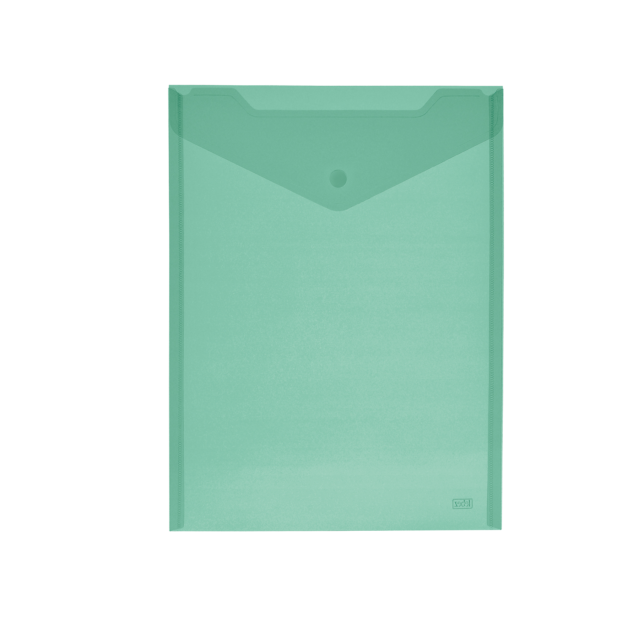 Buste in polipropilene con chiusura a bottone. Confezione assortita in 4 colori. Formato utile: 18x25cm.