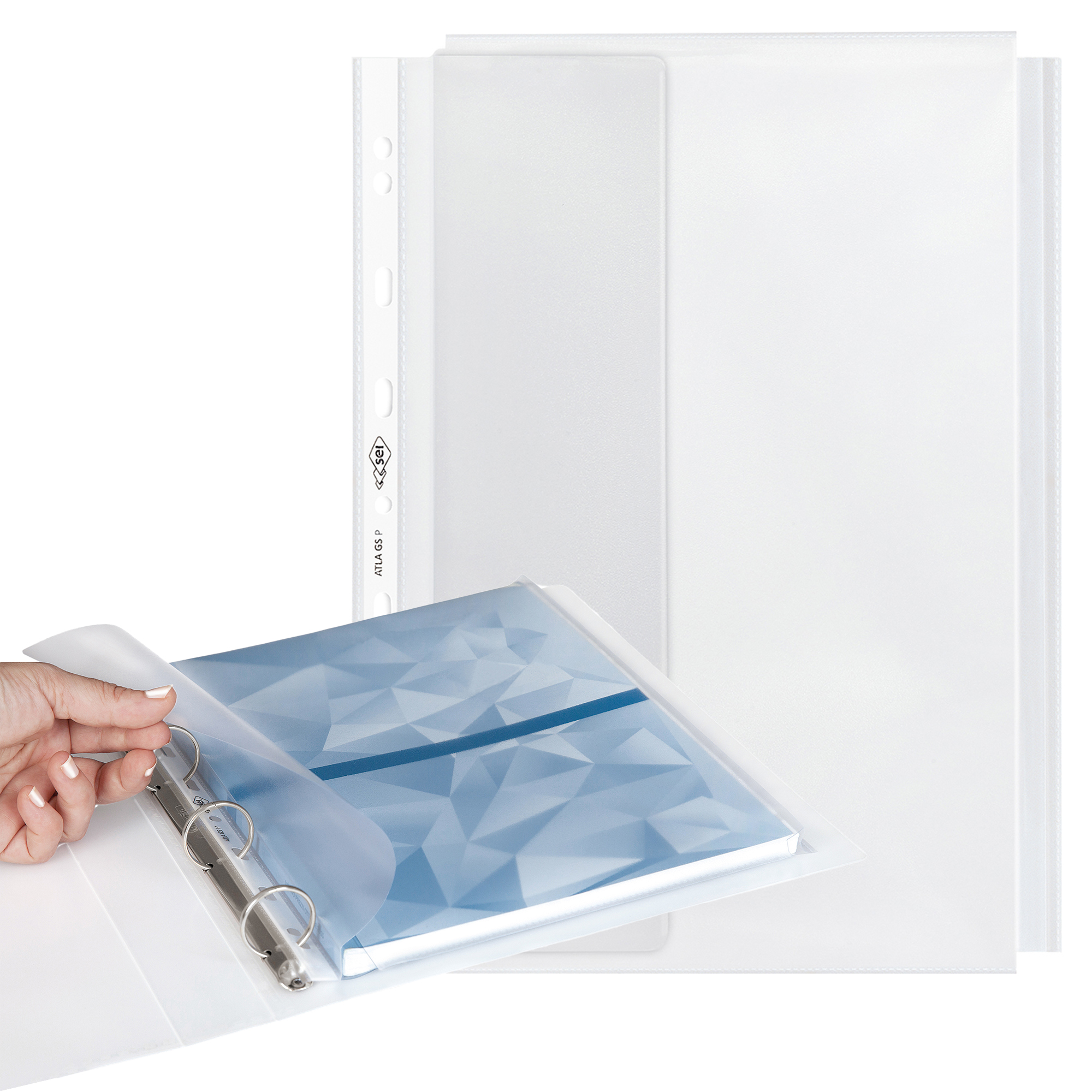 Info sui prodotti "Buste forate ATLA GS P - 21 x 29,7 cm - PP - c/soffietto e patella - trasparente buccia - Sei Rota - conf. 10 pezzi"