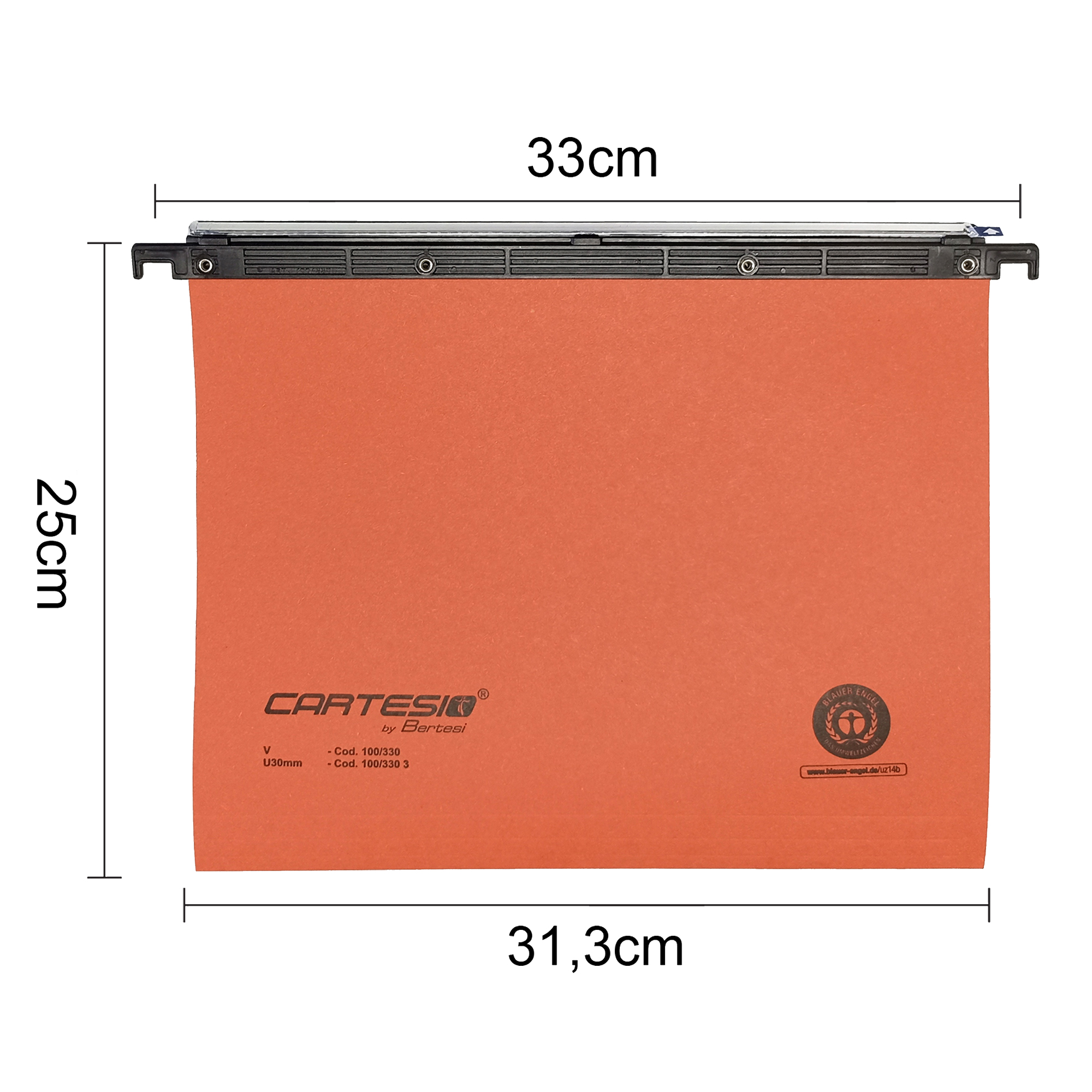 Info sui prodotti "Cartella sospesa Cartesio - cassetto - interasse 33 cm - fondo V - 31,3 x 25 cm - arancio - Bertesi"