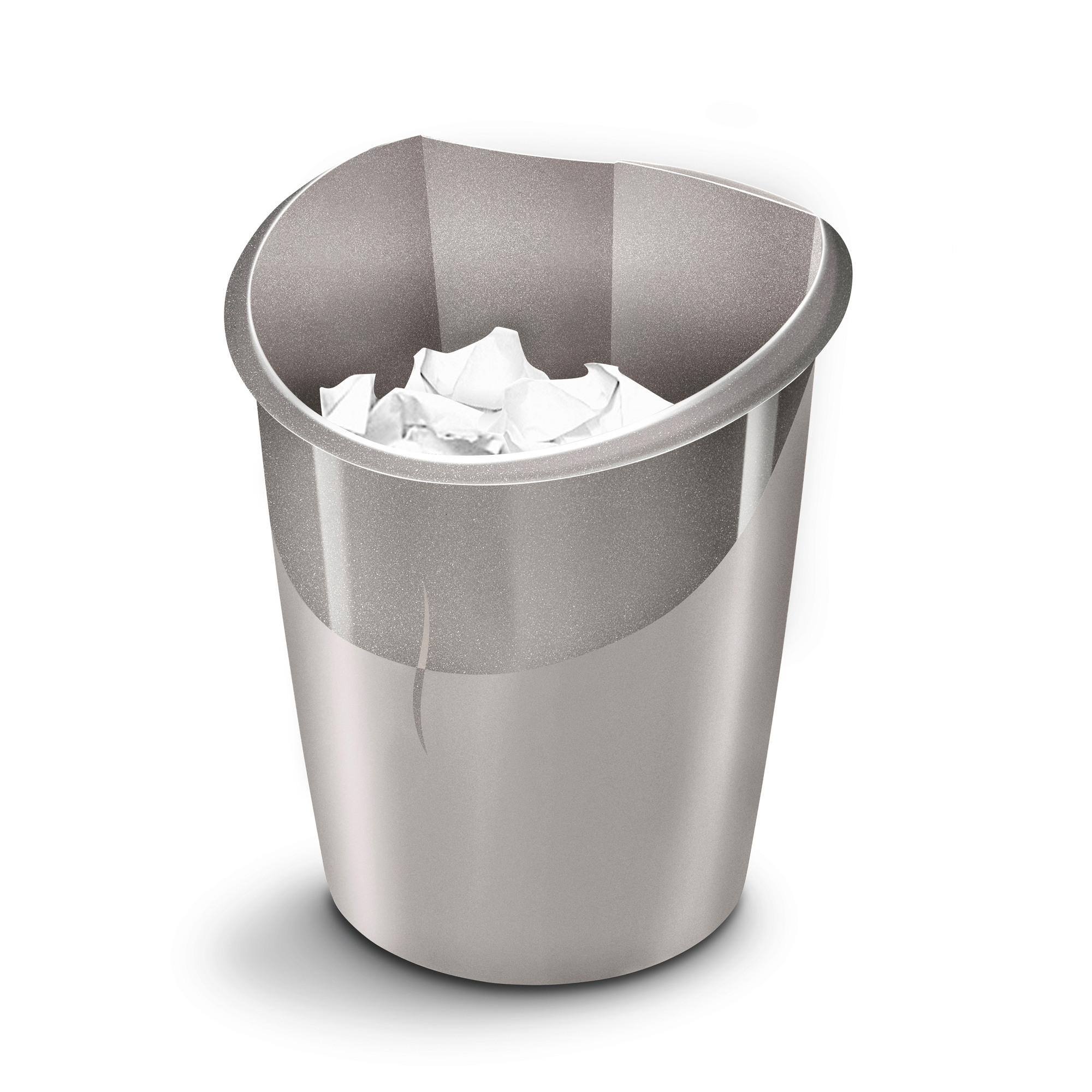 Cestino dal design raffinato con finitura opaca e lucida a contrasto. Forma a mezza luna per ridurre la superficie. Design curvo che consente di gettare facilmente le carte. Ampio bordo a maniglia per una facile maneggevolezza.