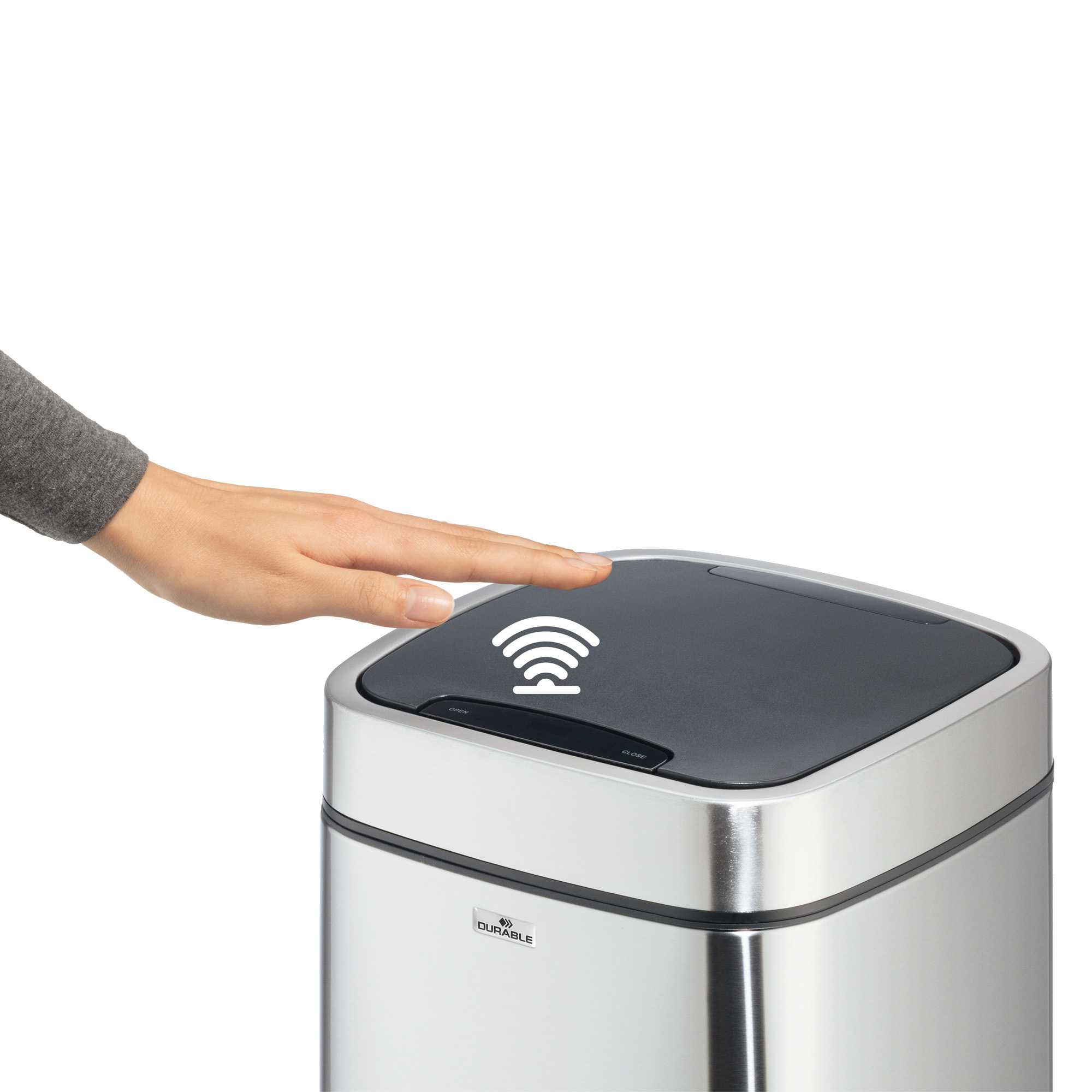 Info sui prodotti "Cestino no touch - con sensore - 24 x 24 x 43 cm- 12 lt - argento metallizzato - Durable"