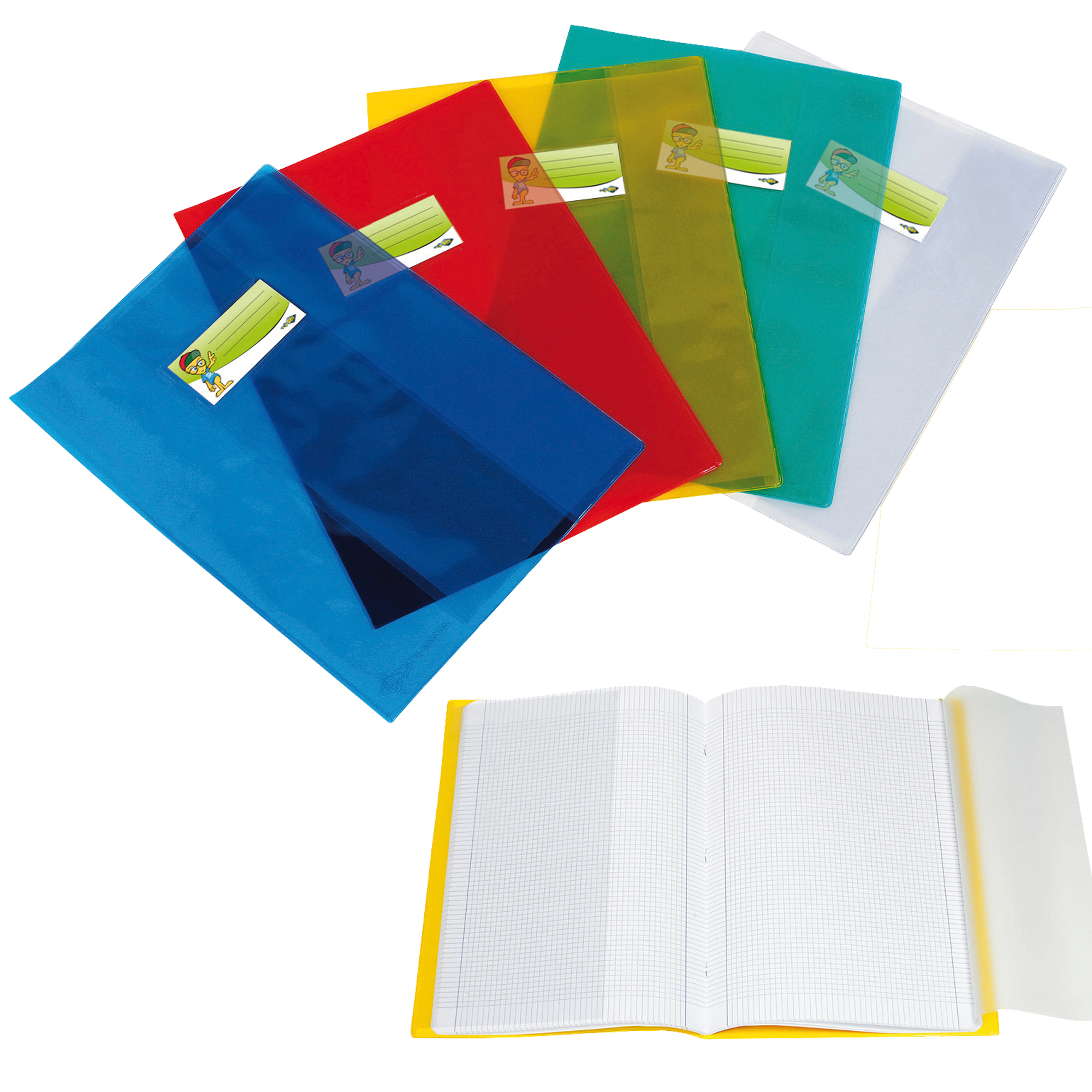 Dotato di 2 tasche laterali per l'inserimento del quaderno e 2 alette trasparenti utili come segnapagina.