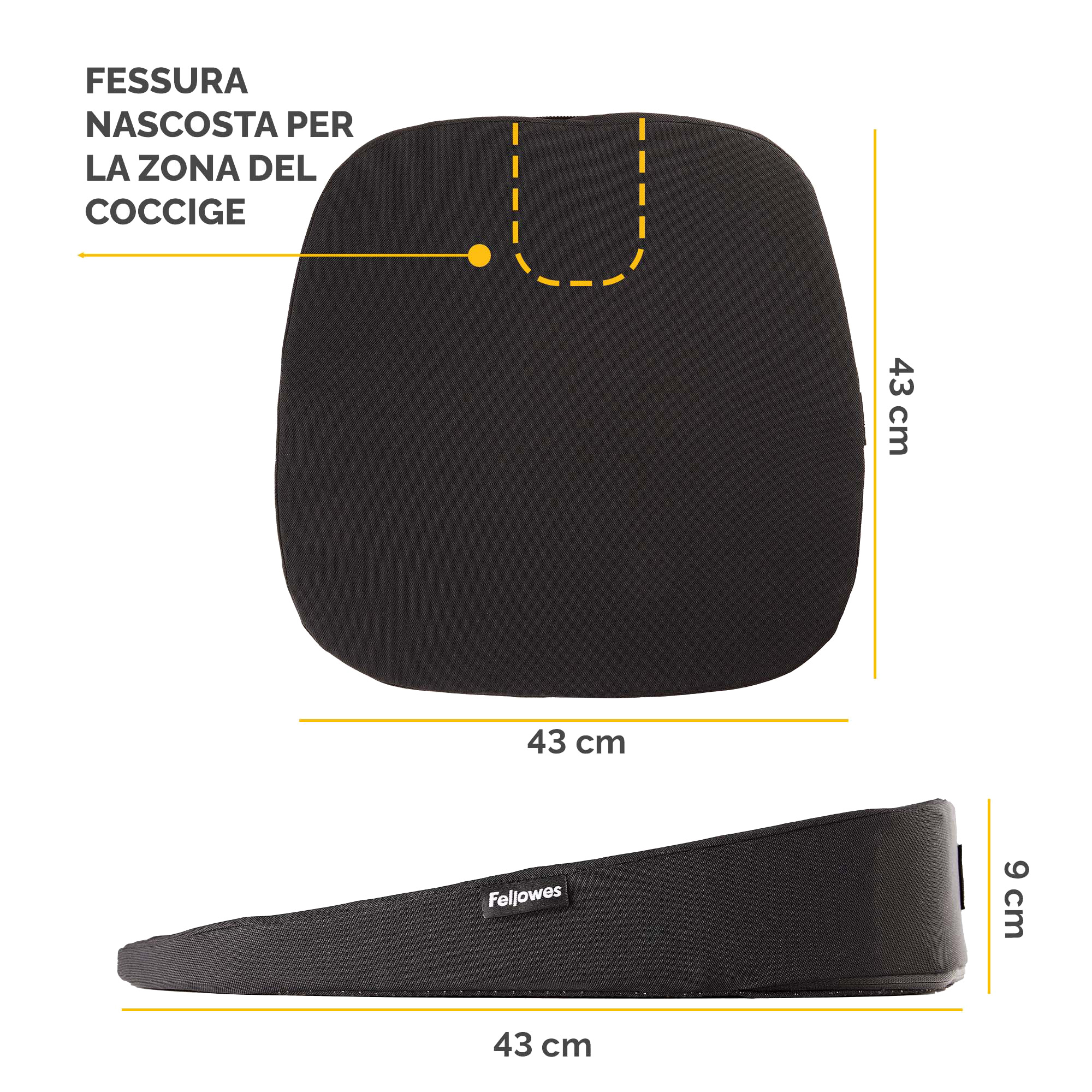 Info sui prodotti "Cuscino Breyta Inclinato - 9 x 43 x 43 cm - in tessuto - nero - Fellowes"