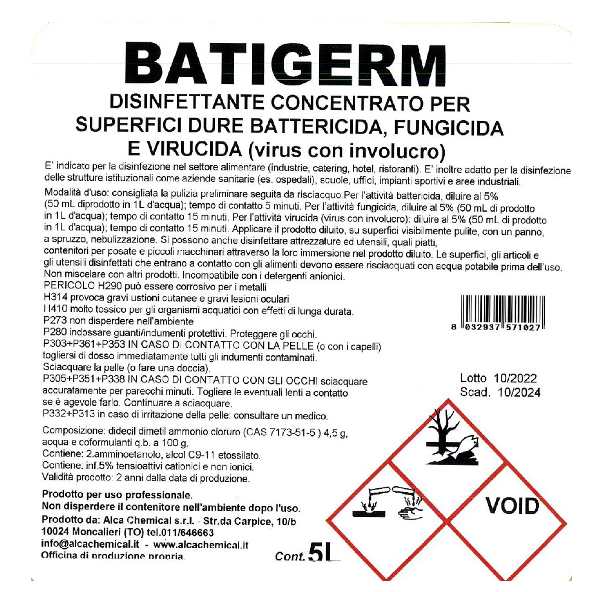 Info sui prodotti "Detergente disinfettante Batigerm - Alca - tanica da 5 L"