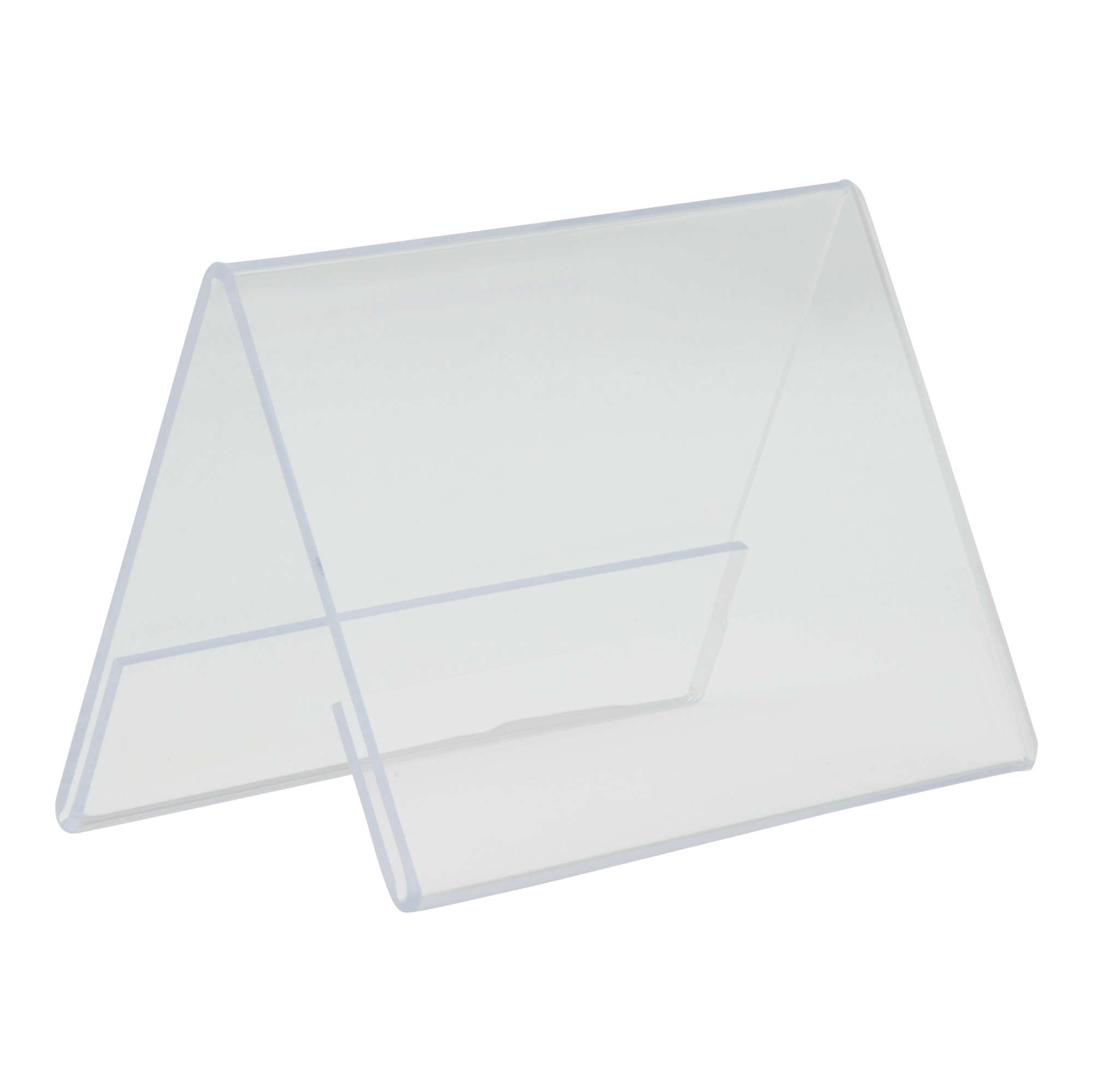 Display portamenù in polistirene altamente trasparente. Display a V porta prezzo a doppia faccia formato A7: 7,8x10,6x6,7cm