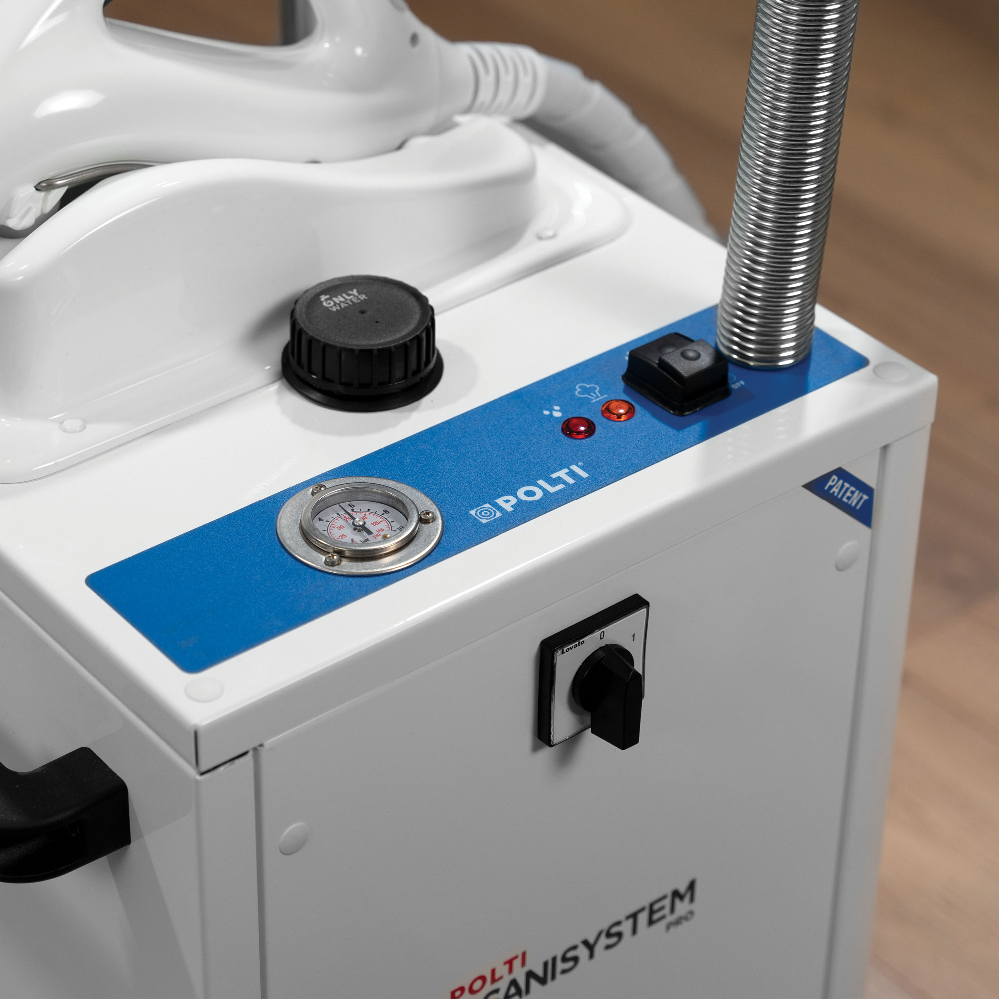 POLTI SANI SYSTEM PRO è un Dispositivo di Disinfezione a Vapore (DDV) conforme alla norma AFNOR NF T72-110 – ambito medicale e ha dimostrato effetto virucida, battericida, sporicida, fungicida, levuricida e mufficida. É ideale per tutte le superfici, i tessuti e gli oggetti, è progettato e costruito interamente in Italia. Grazie alla tecnologia brevettata Superheated Chamber il vapore secco saturo surriscaldato fino a 180°C di Polti Sani System Pro uccide fino al 99,999%* di microrganismi e consente, pertanto, di ridurre il rischio di infezioni crociate. La particolarità di Polti Sani System Pro risiede nel vapore che fuoriesce sotto forma di nuvola, avvolgendo le superfici da disinfettare e permettendo una rapida evaporazione: la disinfezione avviene senza contatto. Polti Sani System Pro può essere utilizzato dappertutto e indirizzato anche negli angoli più difficili. Il moderno design dell’erogatore garantisce un facile e confortevole utilizzo, anche ripetuto nel tempo, grazie alla leggerezza, alla maneggevolezza e all’ergonomia dell’impugnatura. Inoltre il sistema rinforzato di trasporto di ruote e telaio, unito al maniglione in acciaio inox e alle maniglie laterali, agevola e facilita gli spostamenti. ACCESSORI IN DOTAZIONE: 12 flaconi monodose di HPMed da 50 ml + 1 flacone vuoto extra; 15 stoppini; Accessorio concentratore di flusso dritto; Accessorio concentratore di flusso ricurvo; Scovolino in ottone per la pulizia dell’ugello vapore; Tanica da 5 l per il caricamento dell’acqua; Protocollo di utilizzo.