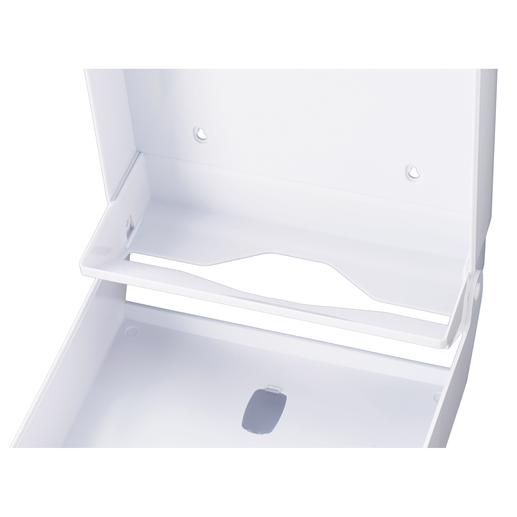 Struttura in ABS. Colore: base grigio-cover bianco. Capacità: 500 fogli. Apertura con chiave in plastica. Per carta asciugamani piegata a “C”, “Z”, “M” “V”. Finestra di controllo della carta. Chiusura a scatto. Viteria inclusa. Dimensioni ingombro: L27,8xP12,8xH38cm. Dimensioni interne: L26,5 x P10,5 x H35,5cm. Peso: 1.9kg. Pulizia periodica da effettuare con un panno morbido e non abrasivo, imbevuto d’acqua. Detergenti che contengono solventi possono danneggiare il materiale.