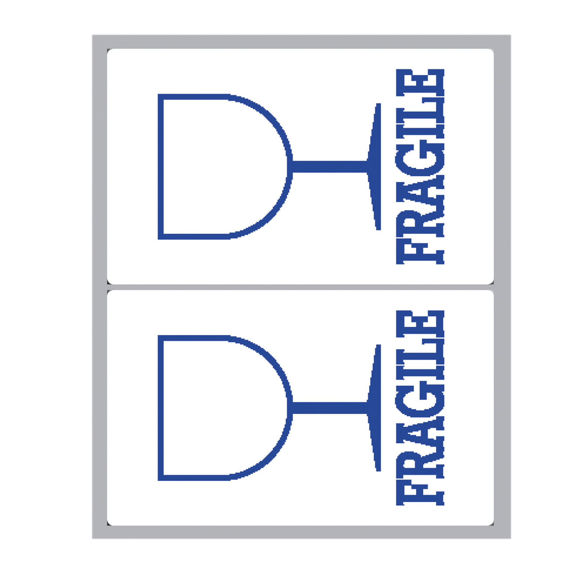 Busta da 10 fogli formato 125x152.5mm di etichette bianche permanenti con scritta FRAGILE. Ogni foglio contiene 2 etichette da 115x70mm.