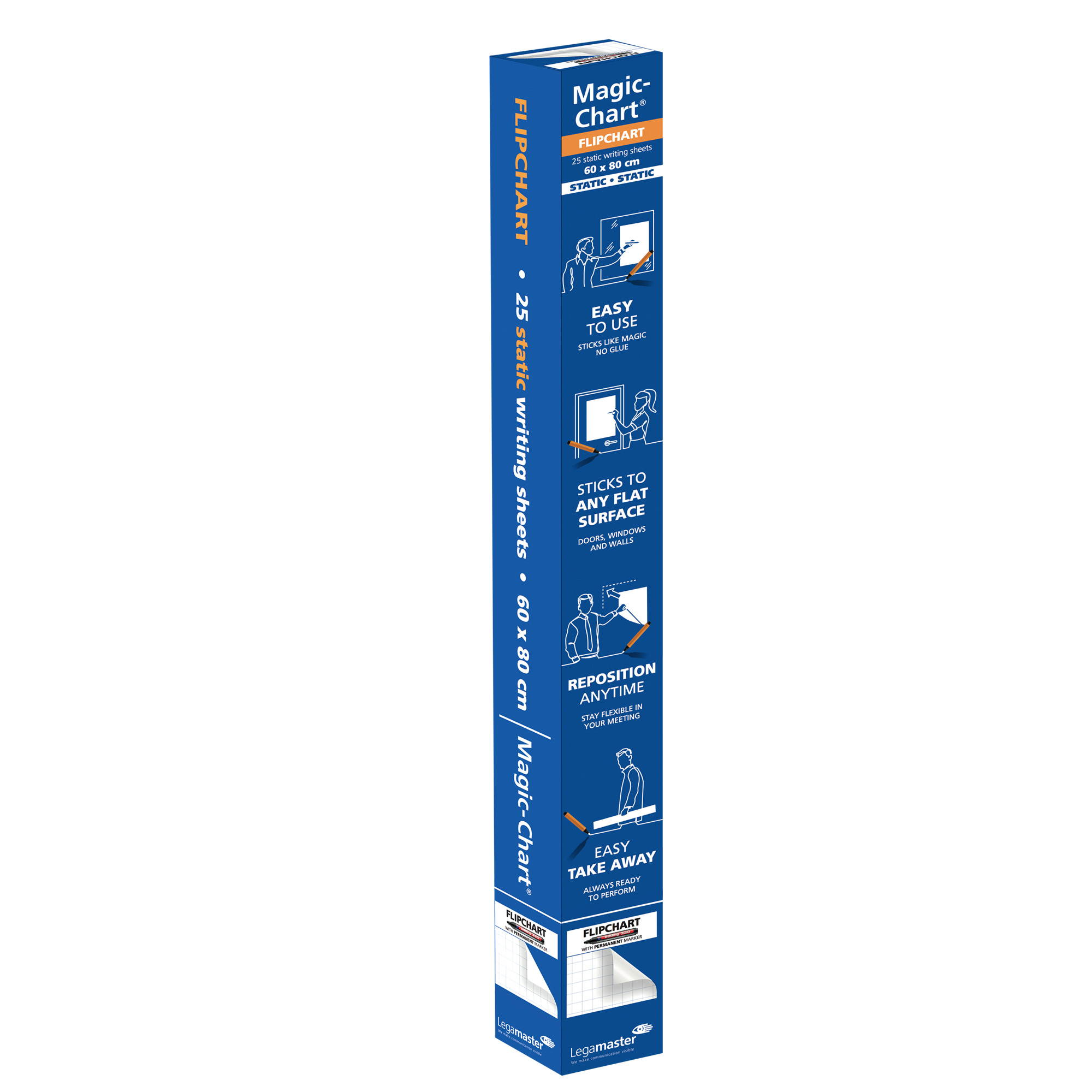Info sui prodotti "Fogli elettrostatici Magic Chart - 60 x 80 cm - quadretti 2,5 cm - Legamaster - rotolo da 25 pezzi"