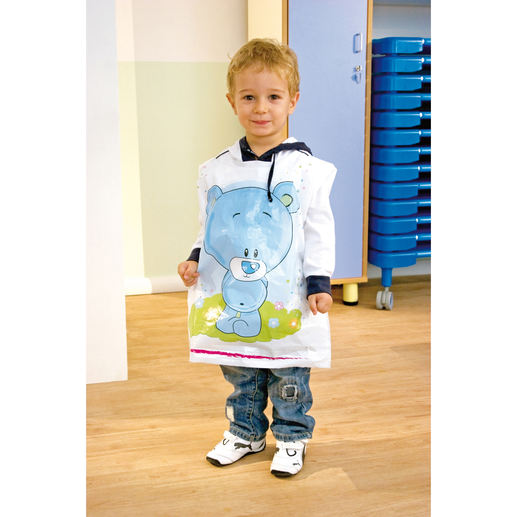 GREMBIULE IN PLASTICA USA E GETTA DA INDOSSARE SOPRA GLI ABITI. DIMENSIONI: 44X52 CM.Confezione 10pz.
