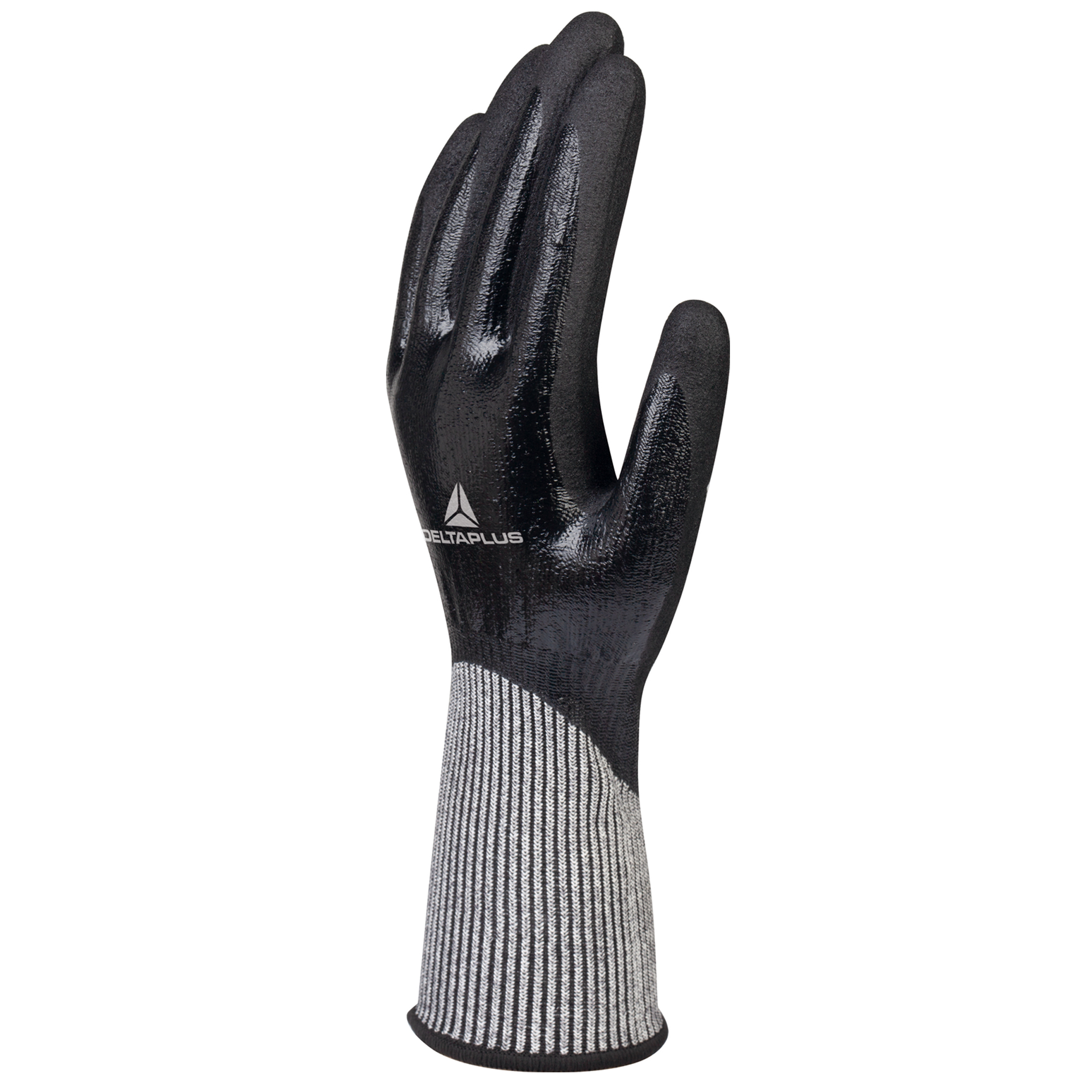 Guanti Tricot DELTANOCUT® Fibra alte prestazioni DELTAnocut®. Doppia spalmatura nitrile. Finezza 13. Impermeabile all'oli e buona adesione. Ottima protezione delle mani. Certificato CE. Conforme a EN ISO 21420:2020, EN388:2016+A1:2018.