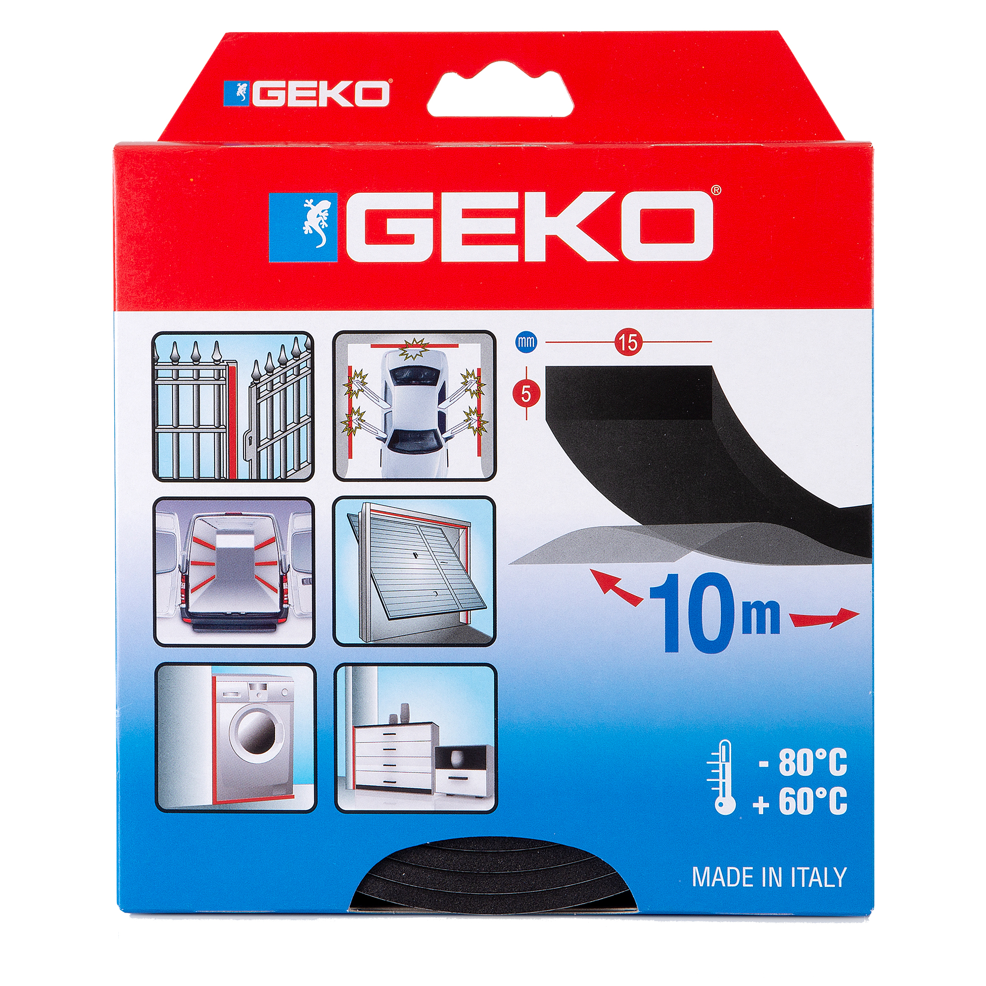 Info sui prodotti "Guarnizione adesiva per serramenti MUSS - 15 x 5 mm x 10 m - neoprene - nero - Geko"