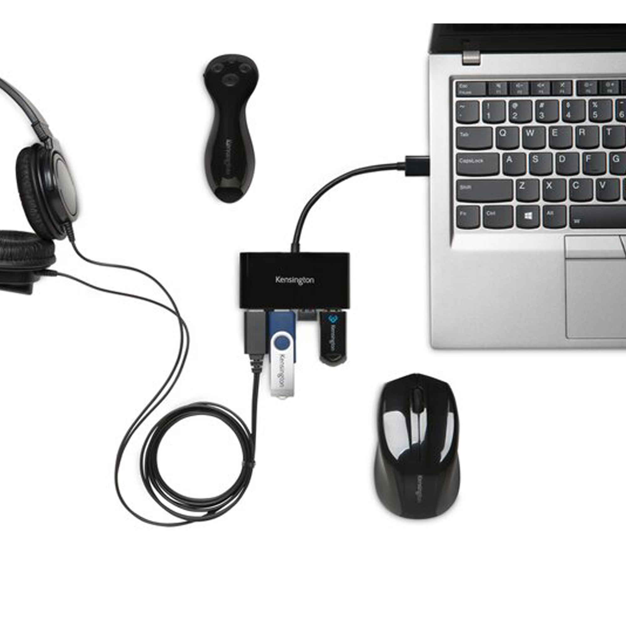 Hub 4 porte USB 3.0 (velocità di trasferimento fino a 5Gb/sec.) UH4000 - nero - Kensington. Compatibile con sistemi Windows 8.1/8/7/Vista/XP; Mac OS X 10.6 o versioni successive.