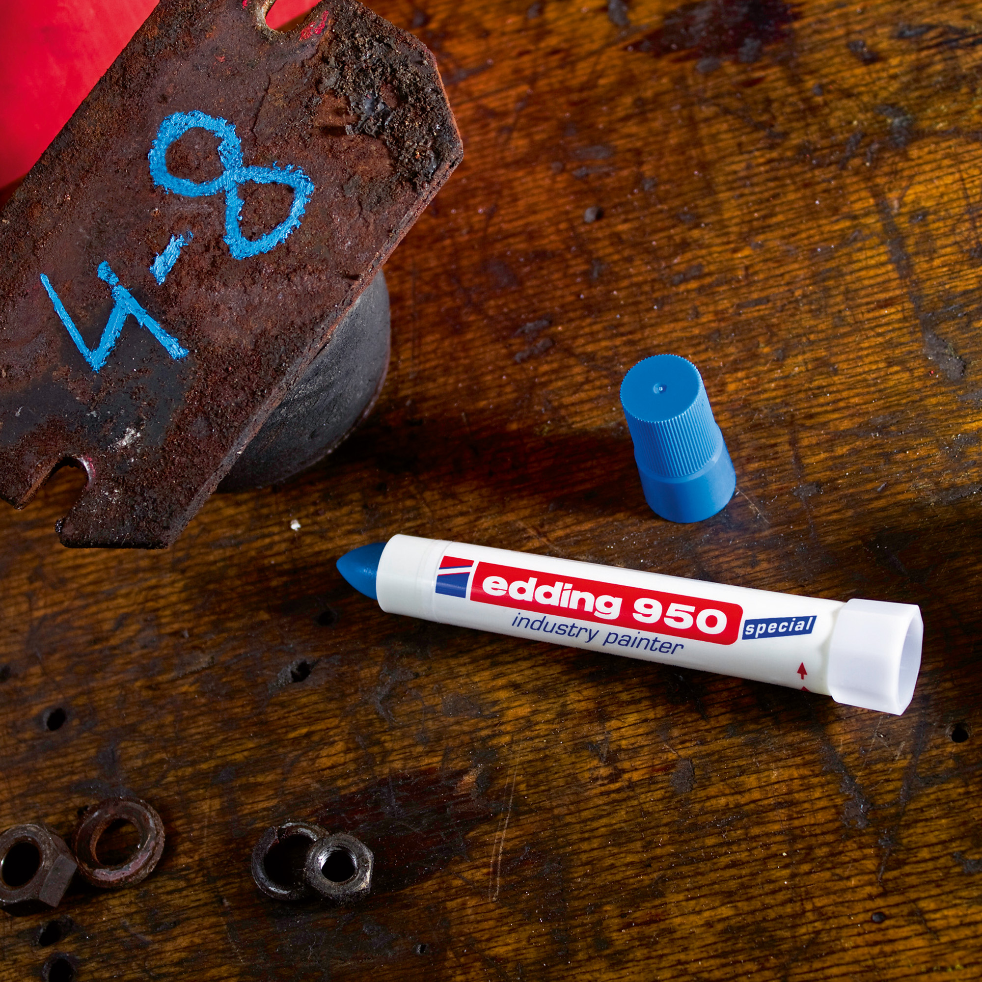 Marcatore industriale altamente permanente ideale per metallo, pietra e legno. Tratto fino 10 mm. Altamente coprente, è resistente alle superfici particolarmente difficili e uniformi. Resiste all'acqua e al calore fino a 300°. Marcatura visibile anche in condizioni di illuminazione compromessa.