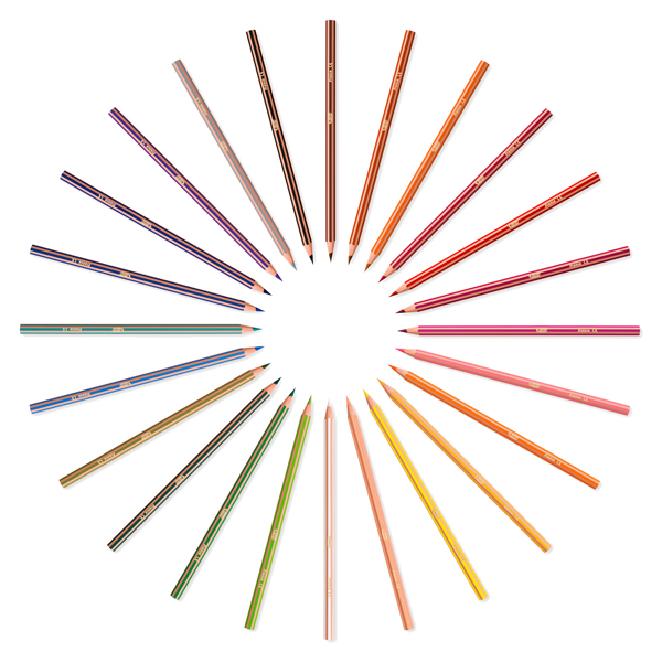 Matite in resina senza legno. Facili da temperare. Non fanno schegge se spezzate. Mina ultraresistente. Difficili da rosicchiare. Colori brillanti. Fornite in astuccio in cartone appendibile. Fusto esagonale classico con effetto a strisce. ( (con 55% di materiale riciclato e certificazione ecologica NF Environmenti).