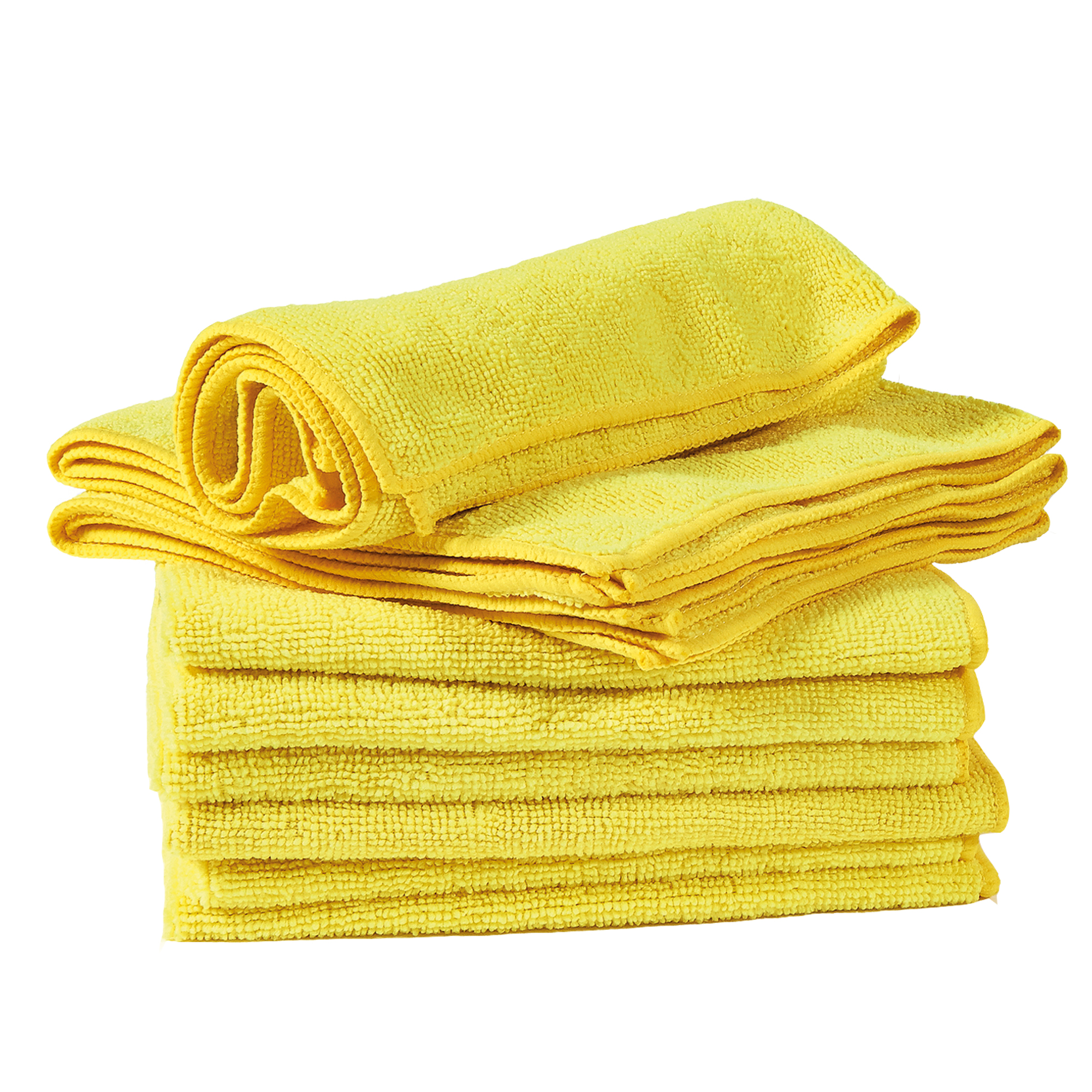 Panno multiuso in microfibra (80% poliestere, 20% poliammide). Dimensioni: 40x40cm. In confezione da 10 panni colore giallo.