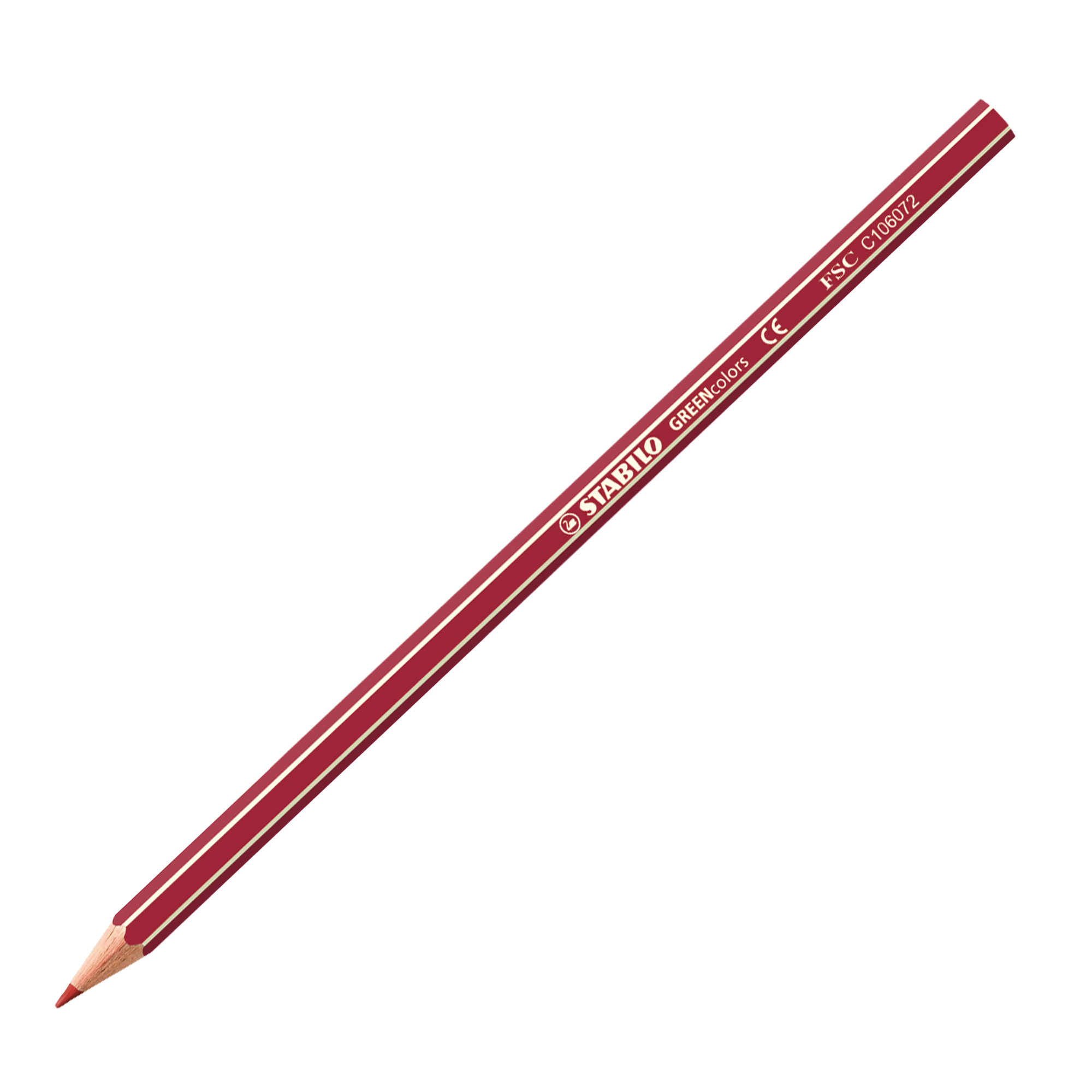 Pastello composto al 100% da legno certificato FSC. Fusto esagonale verniciato opaco nei colori dei pastelli con fusto in vernice atossica (certificato CE). Mina resistente di alta qualità con diam. 2,5 mm facile da temperare. Astuccio in cartone riciclato al 80%. Disponibile fino a 24 colori.