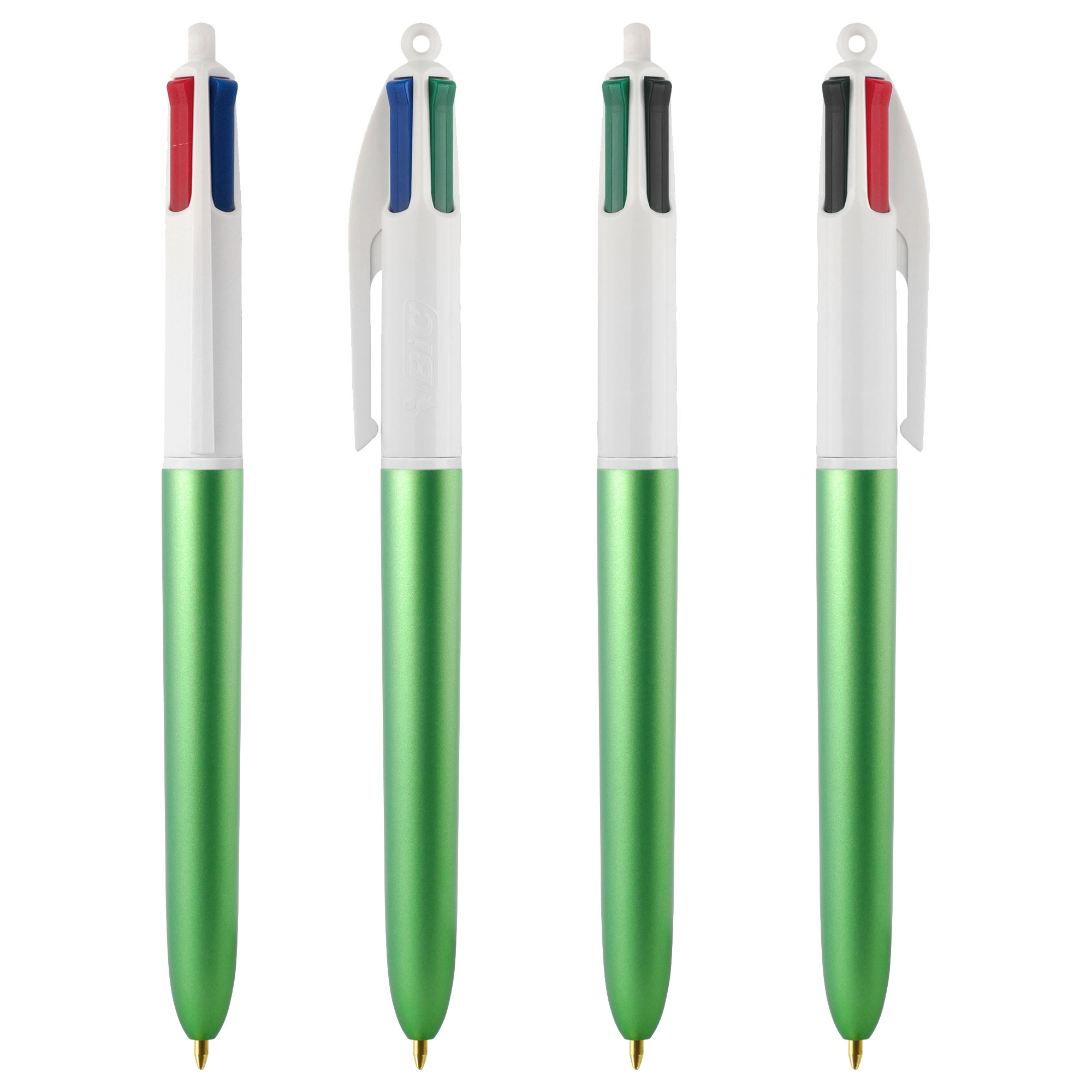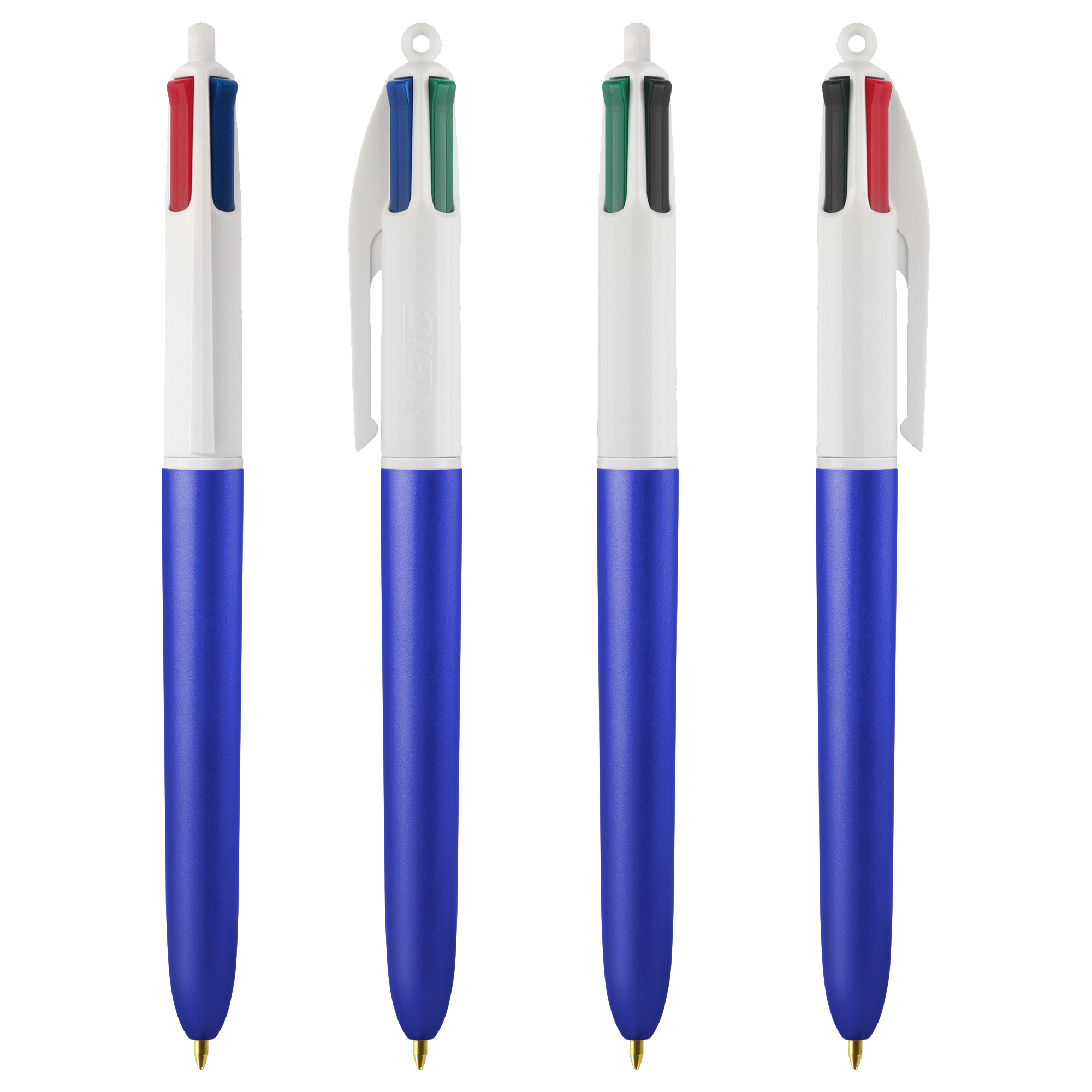 Assortimento misto di penne 4 colori con fusto ad effetto satinato glacè in 4 diversi colori: blu, verde, rosso e argento.