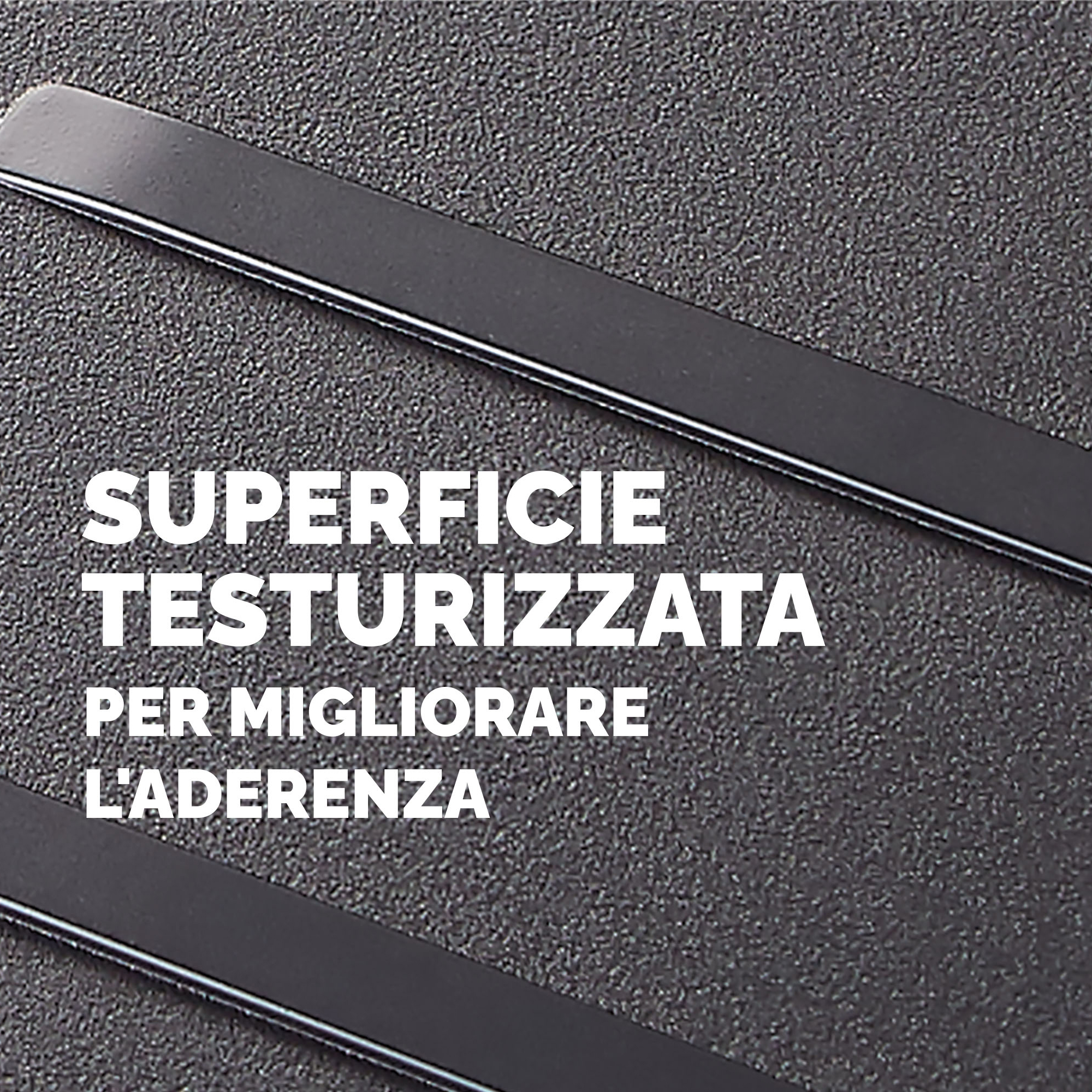 Poggiapiedi con sistema antibatterico Microban che evita la crescita di depositi di sporcizia che possono causare la proliferazione dei batteri. Può essere regolato in 3 diverse posizioni, da 10,8 a 14,6cm, semplicemente esercitando una pressione col piede. Meccanismo di blocco nella posizione prescelta. Dimensioni: 10,8x44,4x33,3cm.