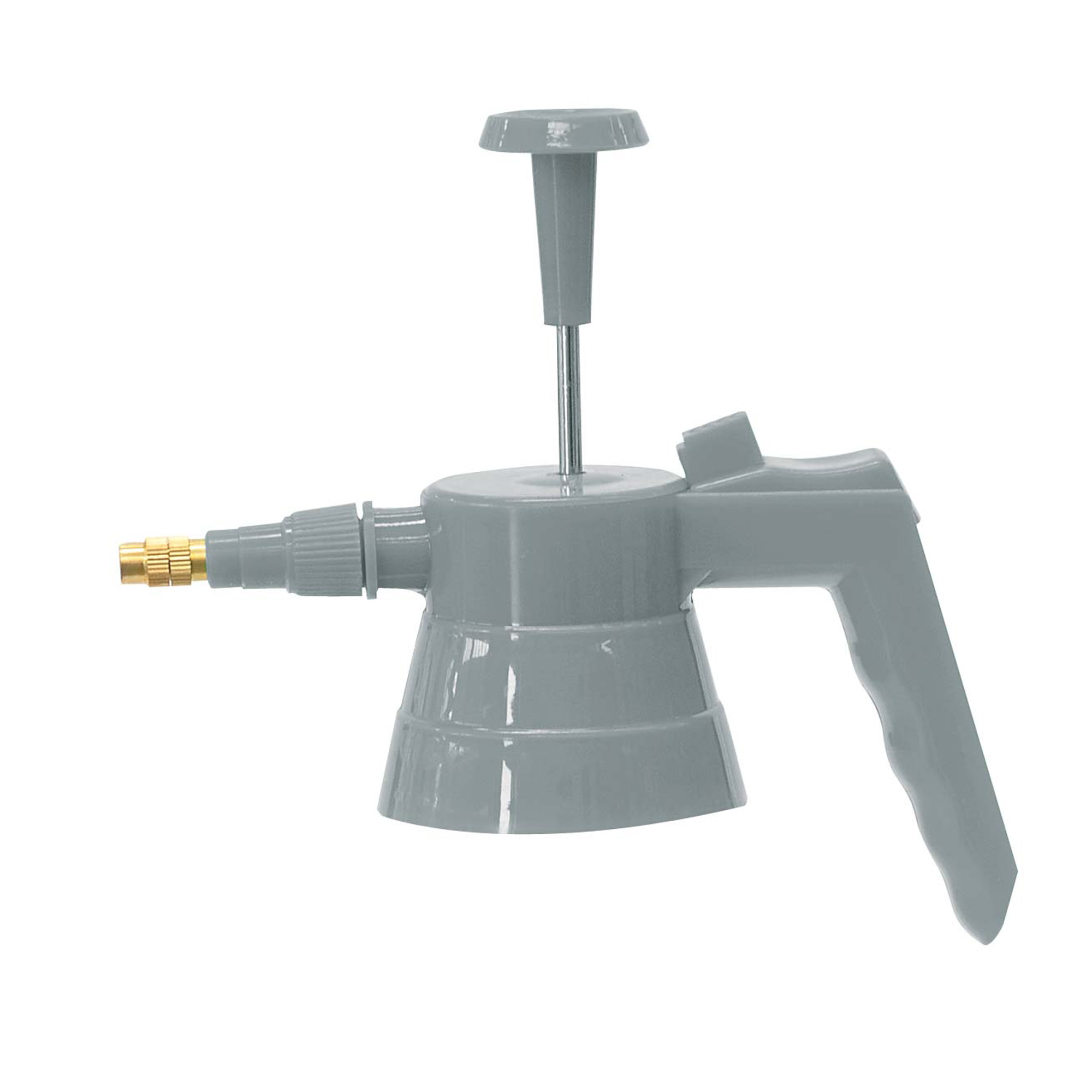 Pompa a pressione manuale per uso professionale con beccuccio in ottone e asta pompante in metallo. Dotata di blocco per una irrorazione continua e di valvola di sfiato. Serbatoio da 2 litri.