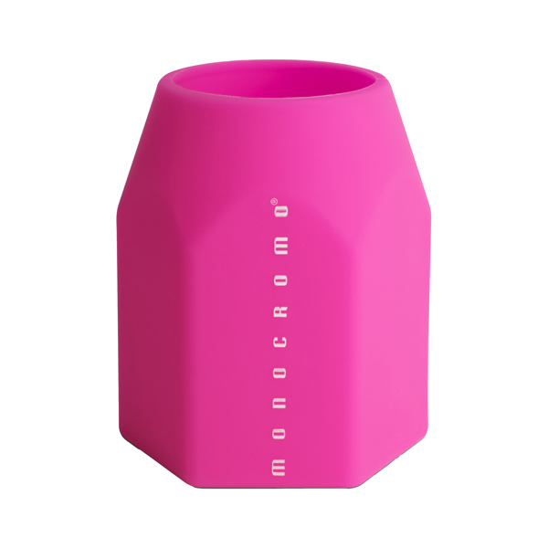 Portapenne da scrivania con logo Monocromo In morbido silicone lavabile. Base di forma esagonale. Misure: 9,5x7,5x7 cm.