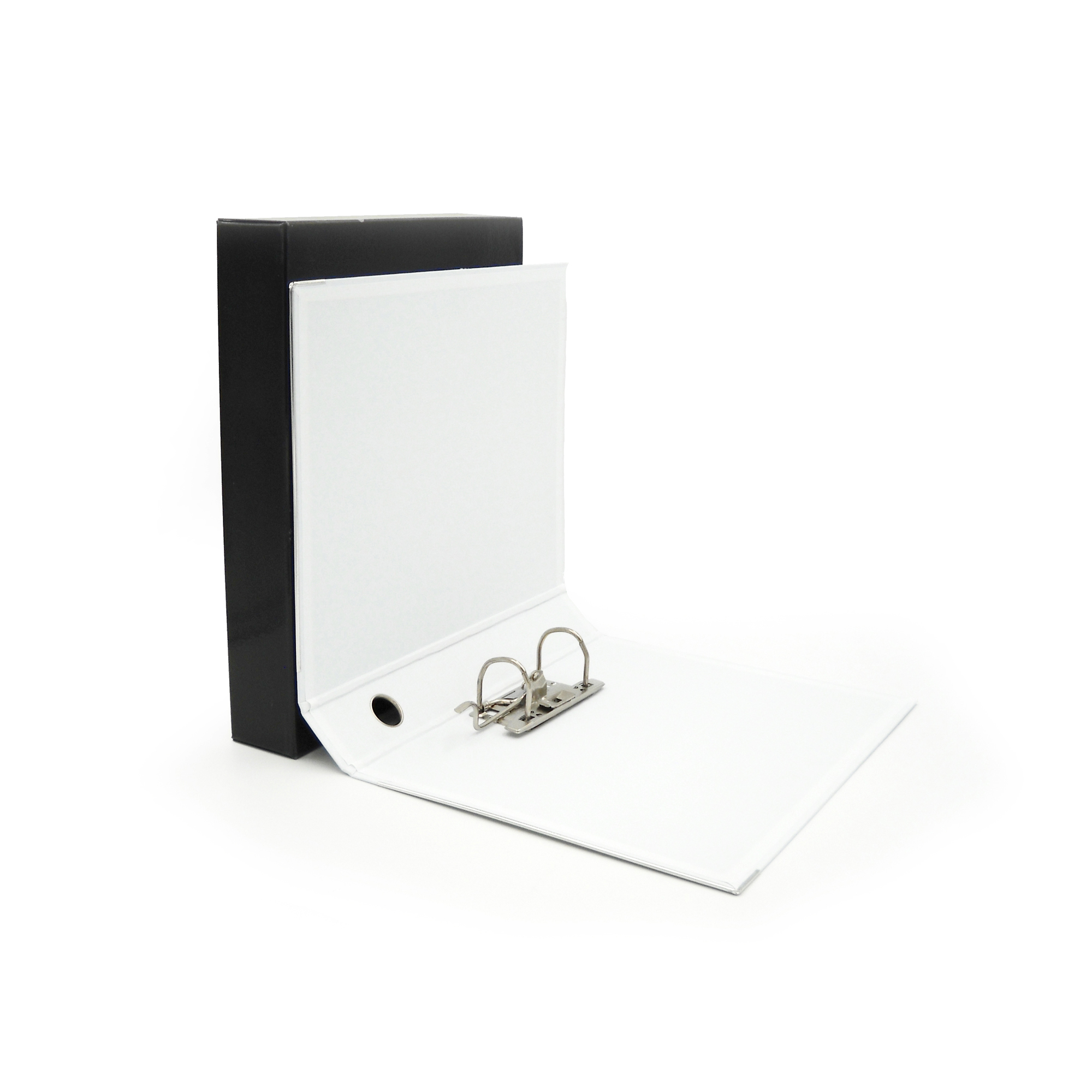 KingBox è un registratore indeformabile, lavabile e duraturo nel tempo, in cartone accoppiato da 2 mm di spessore, con rivestimento in resistente polipropilene goffrato. Dotato di propria custodia in cartone accoppiato nero, con bordi rinforzati, e di meccanismo a leva di alta qualità ancorato saldamente mediante 4 rivetti. Per agevolare la presa e facilitare l'archiviazione, KingBox presenta un anello di estrazione in acciaio nichelato (diametro 25 mm) ed una etichetta personalizzabile/scrivibile all'interno di una comoda busta termosaldata in PVC trasparente (170x100 mm), interamente fasciante il dorso.