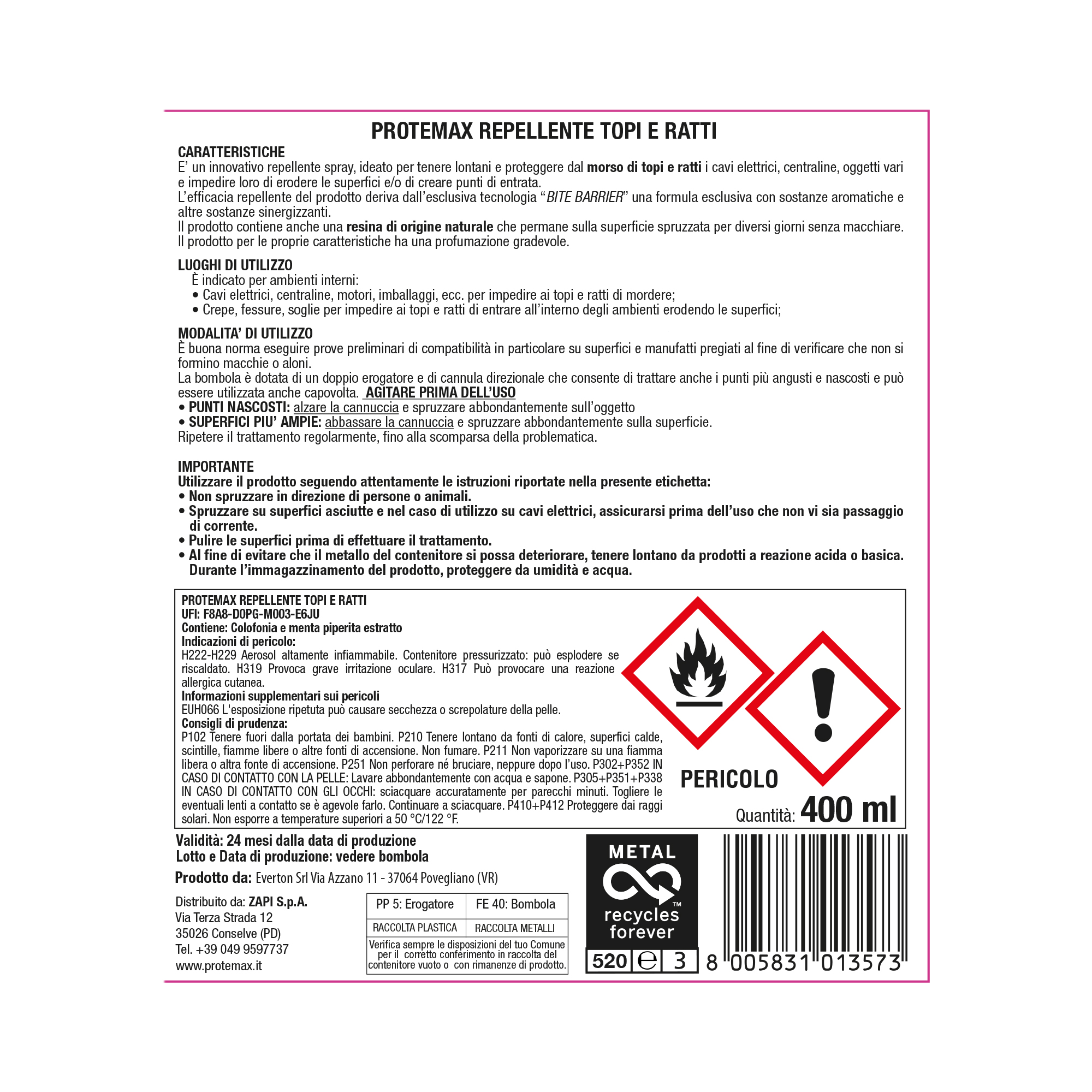 Info sui prodotti "Repellente topi e ratti - 400 ml - Protemax"