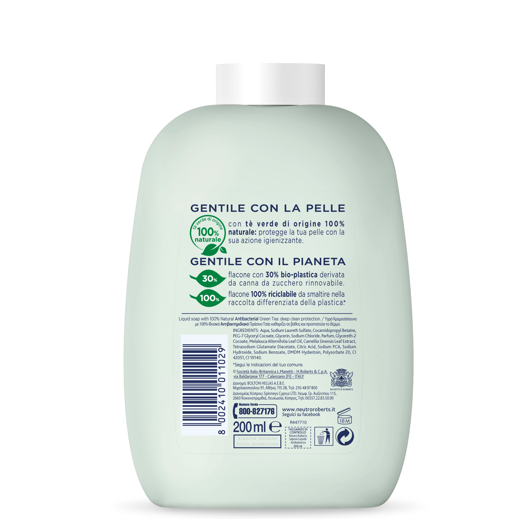 Ricarica bis 200+200ml di sapone liquido Antibatterico con tè verde Neutro Roberts.