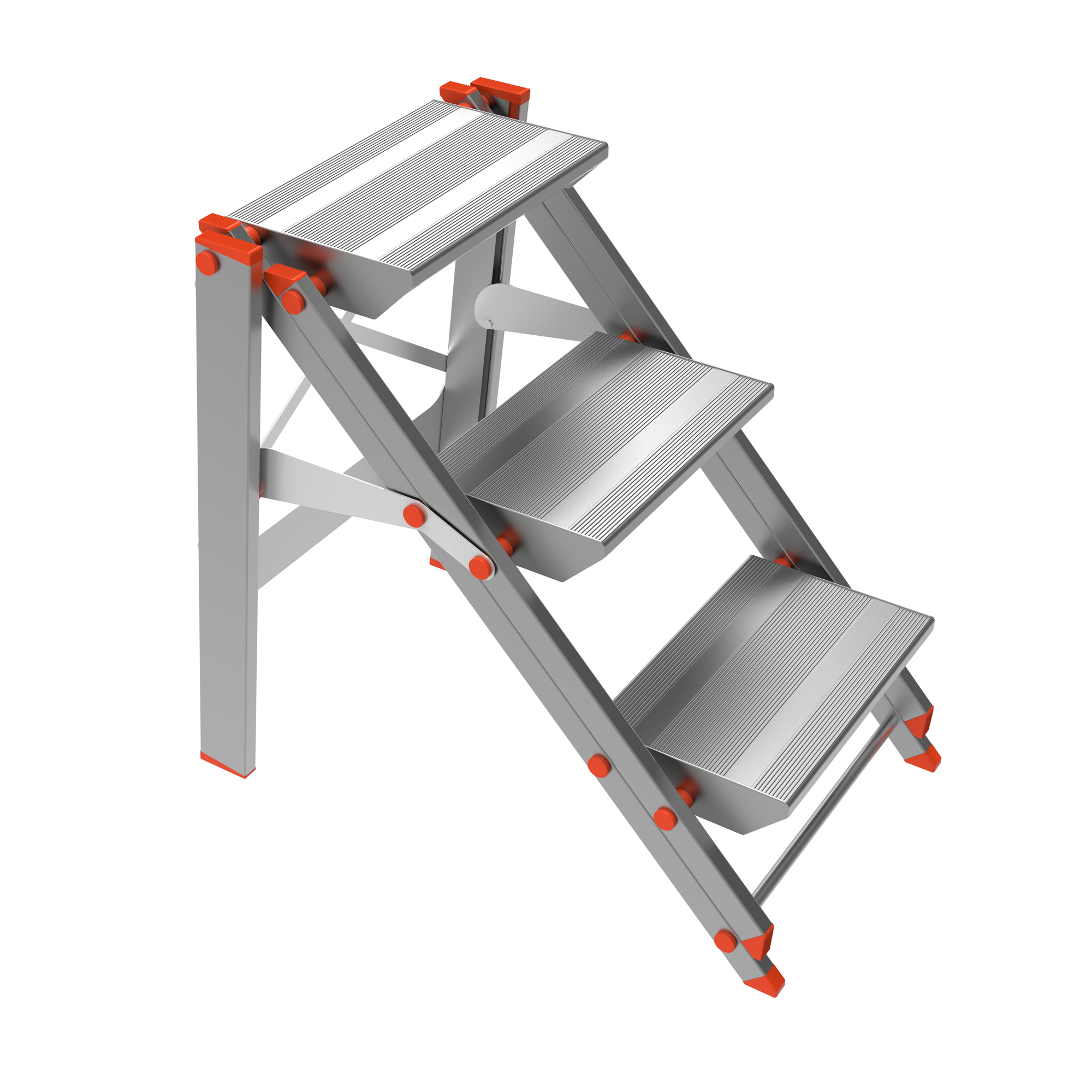 Scale robuste leggere e resistenti in alluminio anodizzato. Salita comoda grazie ai gradini piani con doppio profilo rinforzato, antisdruciolo 360x230mm. Dotate di parapetto da 60cm richiudibile ad innesto automatico. Altezza piattaforma 0,69m. UNI EN 131. D.Lgs 81/2008 art.113. D.Lgs 206/2005 art.2 consumatori. Portata massima 150 KG.