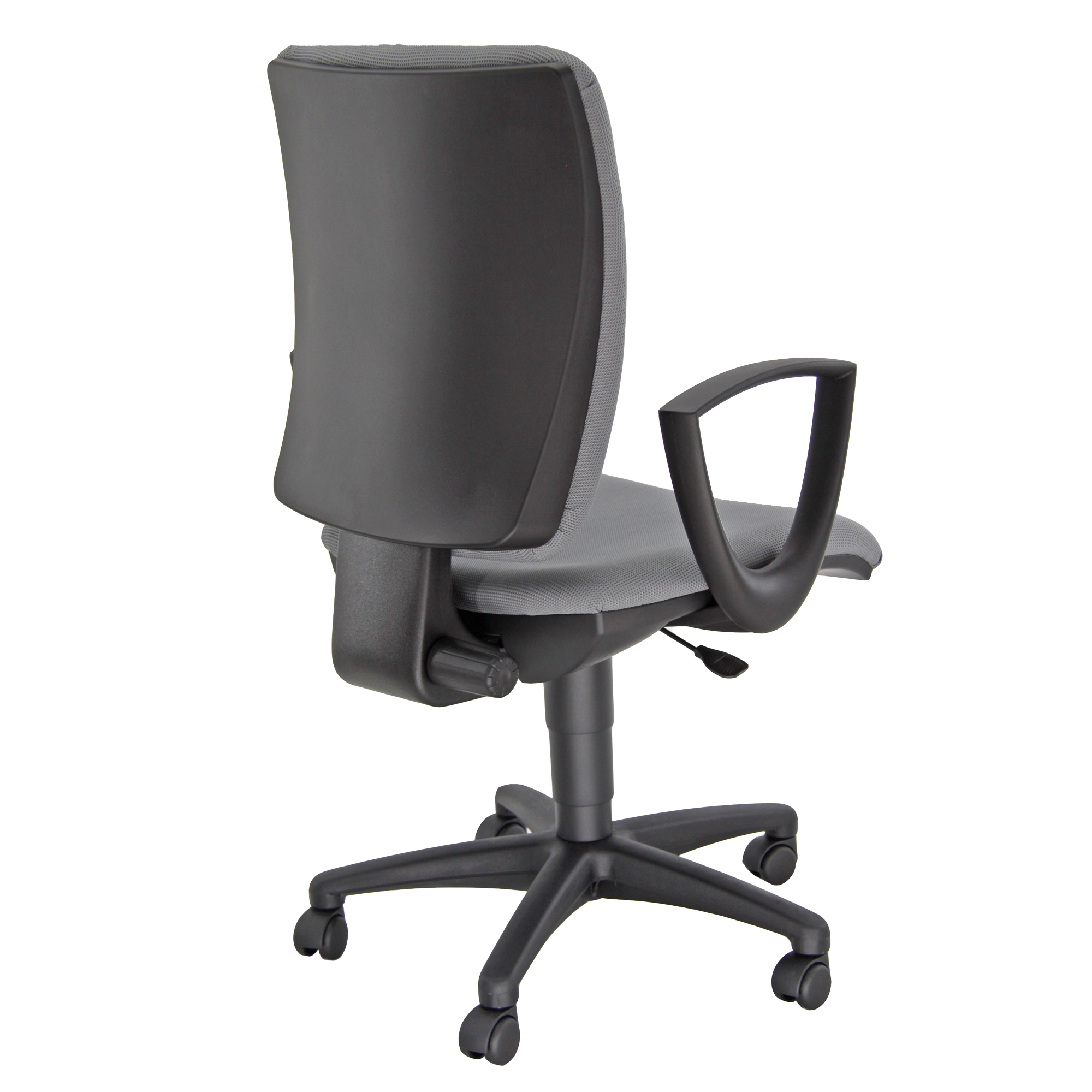 Seduta operativa girevole - elevazione a gas - schienale regolabile up-down - meccanismo a contatto permanente con molla di ritorno. Rivestimento seduta in tessuto "SUPER - Target" 100% poliestere e reazione al fuoco classe 1. Completa di braccioli fissi. Alt.tot.: 96-108cm; Prof.tot.: 68cm; Alt.schienale: 46cm; Larg.schienale: 46cm; Larg.seduta: 50cm; Prof.Sedile: 46cm; Alt. sedile: 42-54cm.