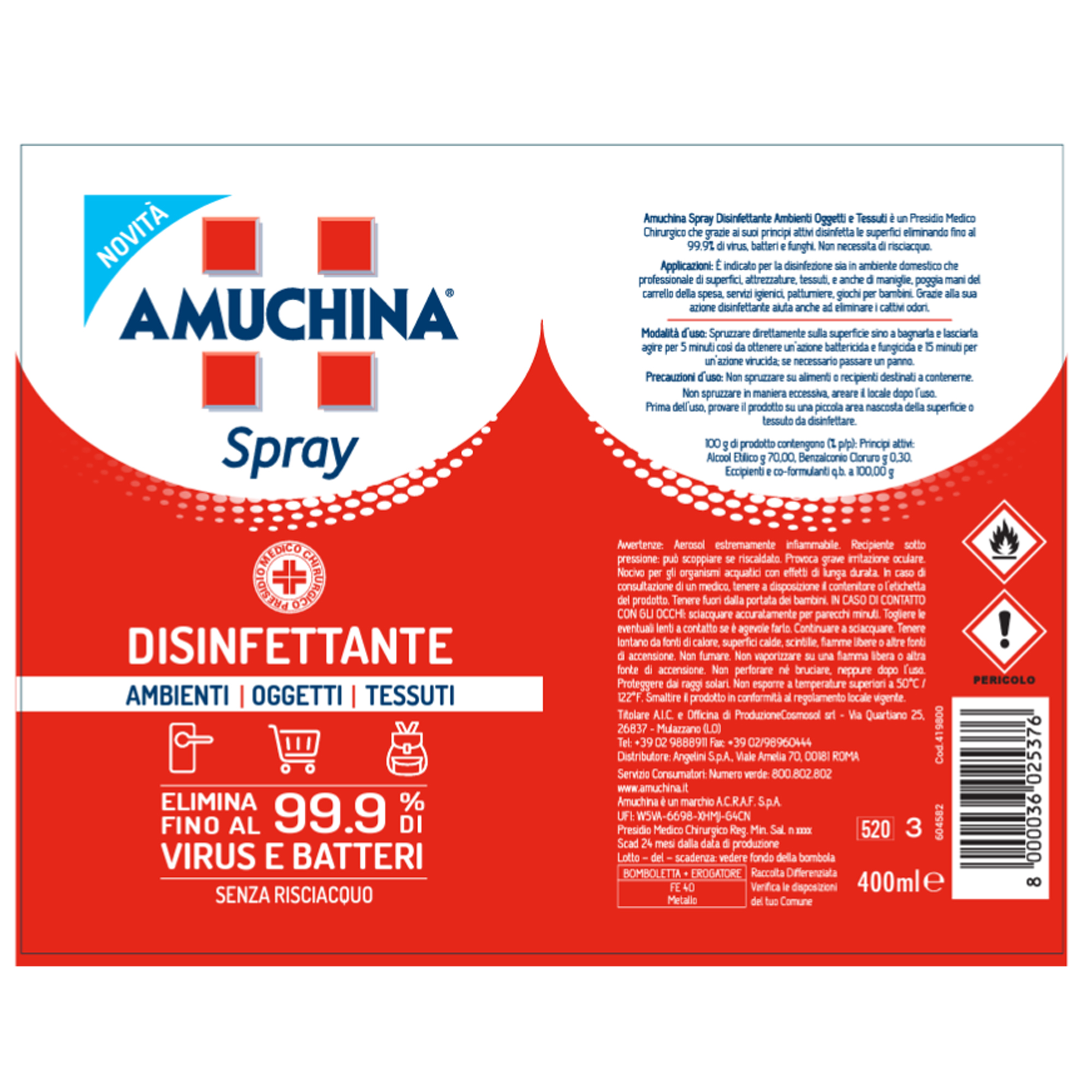 Info sui prodotti "Spray amuchina - disinfettante per ambienti oggetti e tessuti - 400 ml - Amuchina Professional"