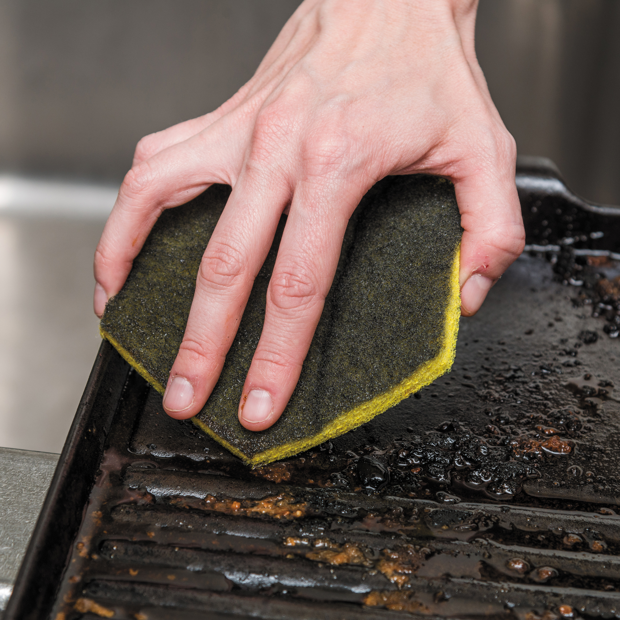 La fibra abrasiva a doppia funzione Scotch-Brite™ 96HEX è una fibra abrasiva per applicazioni mediamente gravose, realizzata con fibre, minerali e resine di alta qualità. Si tratta di una potente fibra progettata per rimuovere lo sporco più ostinato e le incrostazioni più pesanti con una fatica minore rispetto alle tradizionali. Presenta un lato giallo abrasivo con “Power Dots”, sviluppato appositamente per rimuovere velocemente lo sporco incrostato, e un lato verde che elimina i piccoli residui di cibo e grasso per superfici pulite e splendenti.Le applicazioni d’uso includono la pulizia di: pentole e padelle, utensili da cucina, attrezzature da cucina e per la manutenzione, acciaio inossidabile.