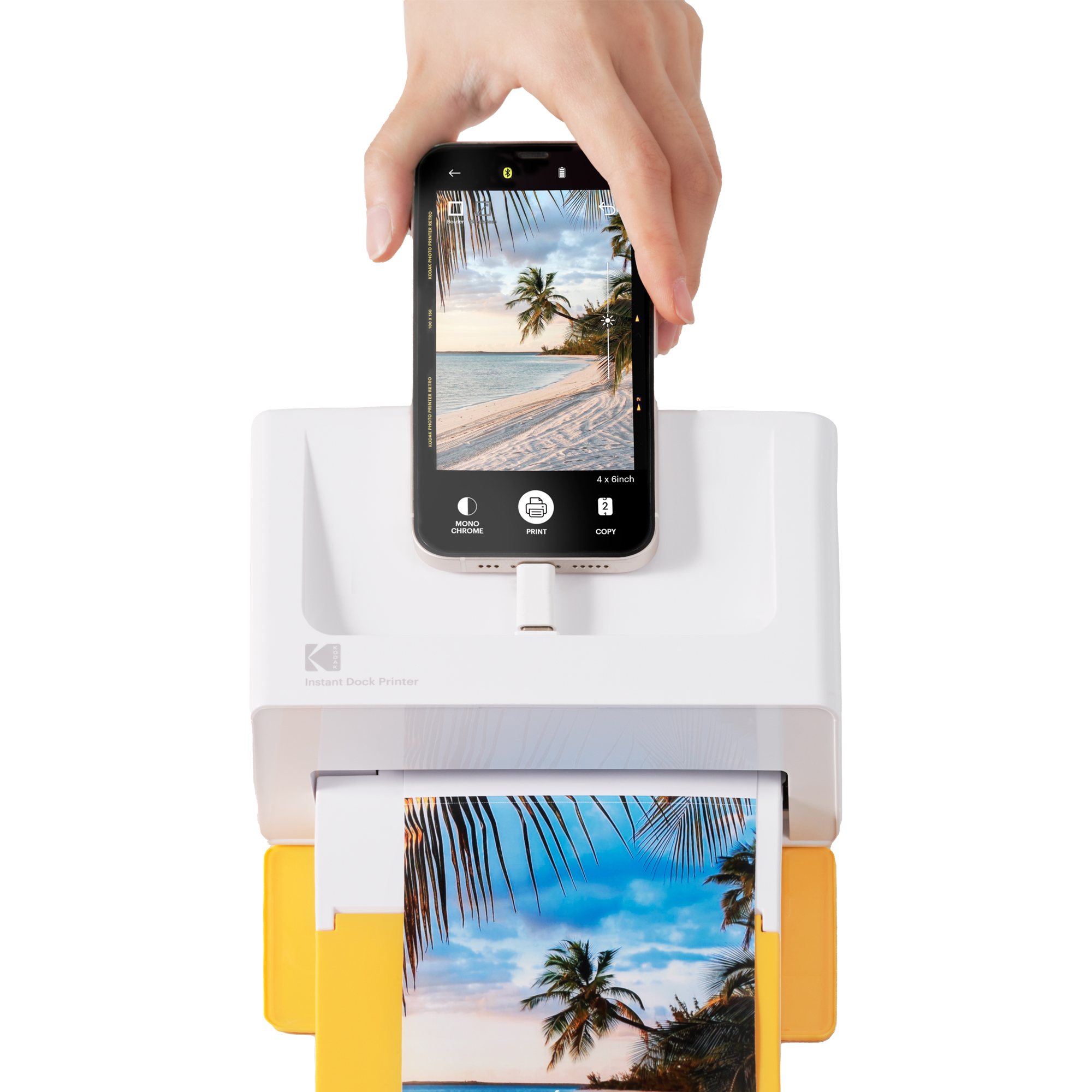 stampante fotografica wireless utilizza la tecnologia 4Pass (sublimazione) per stampare foto di alta qualità, vivaci, resistenti all'acqua e alle impronte digitali, in formato tascabile. • Stampa direttamente dai tuoi dispositivi mobili tramite Bluetooth® • Compatibile con dispositivi iOS e Android™ • Stampa foto in formato cartolina (4"x6") e PrintaCase Print • Stampe fotografiche di alta qualità, impermeabili e a prova di impronte digitali • Uno strato protettivo extra preserva la qualità dell'immagine Stampa in circa 60 secondi • Docking station con USB-C e adattatore Lightning • Scarica gratuitamente l'app KODAK PrintaCase. • Stampa per filtri, ritagli, adesivi, modelli, stampa di fototessere e altro ancora • Crea una custodia per smartphone fai da te